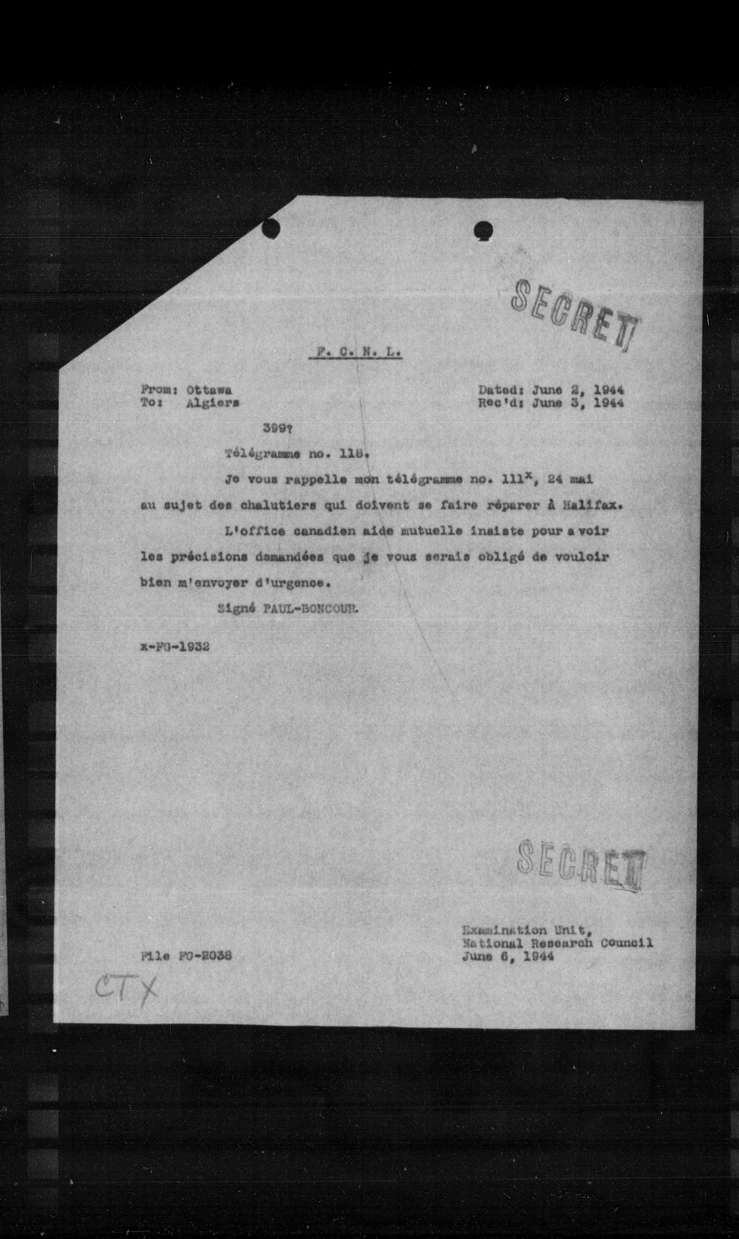 “Reel 17426 - Page 1115,” The Canadian Vichy Intercepts, accessed January 28, 2026, http://omeka.uottawa.ca/examination-unit/items/show/15529.
