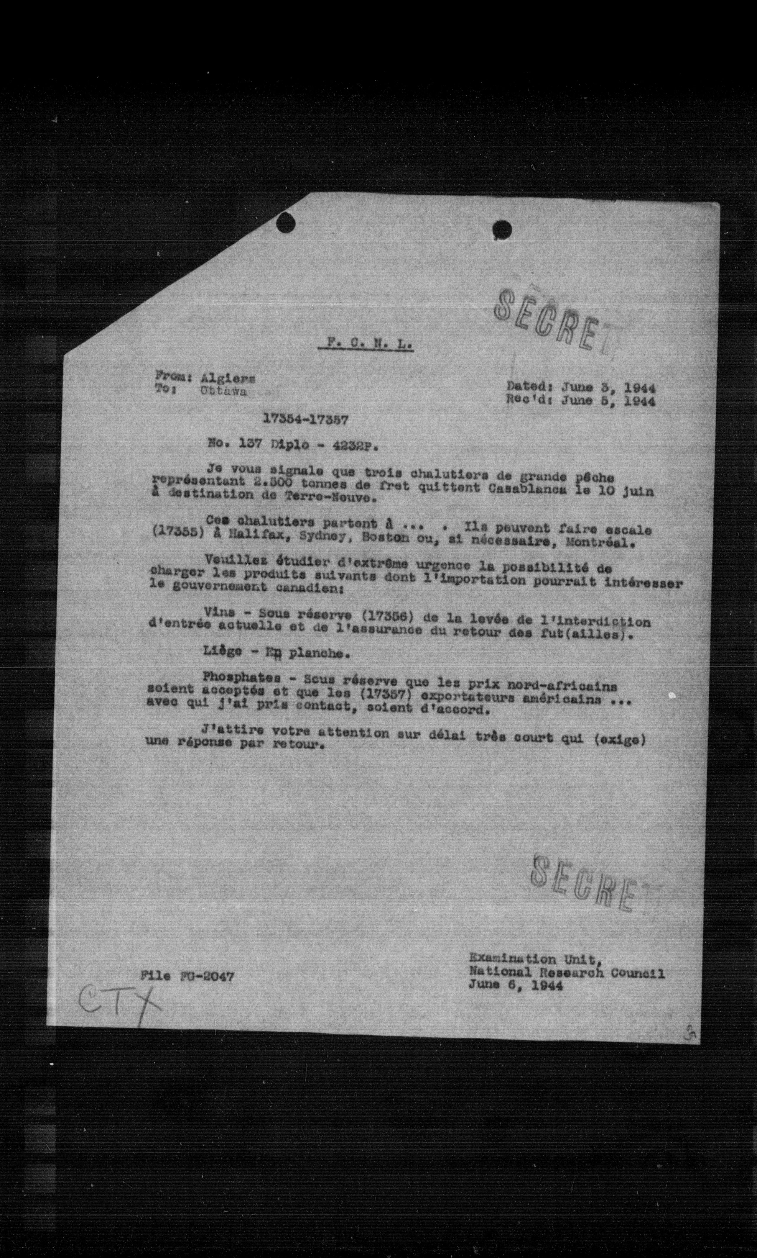 “Reel 17426 - Page 1124,” The Canadian Vichy Intercepts, accessed January 28, 2026, http://omeka.uottawa.ca/examination-unit/items/show/15538.