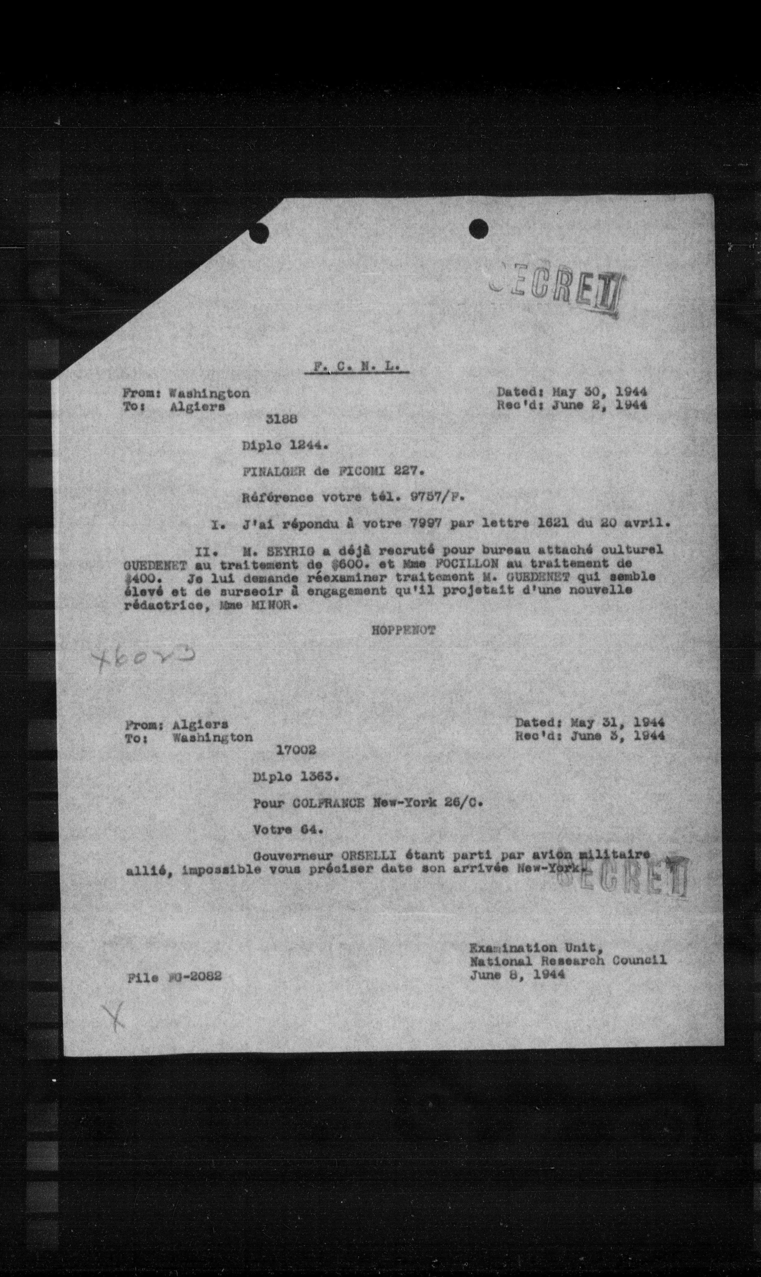 “Reel 17426 - Page 1162,” The Canadian Vichy Intercepts, accessed January 28, 2026, http://omeka.uottawa.ca/examination-unit/items/show/15576.