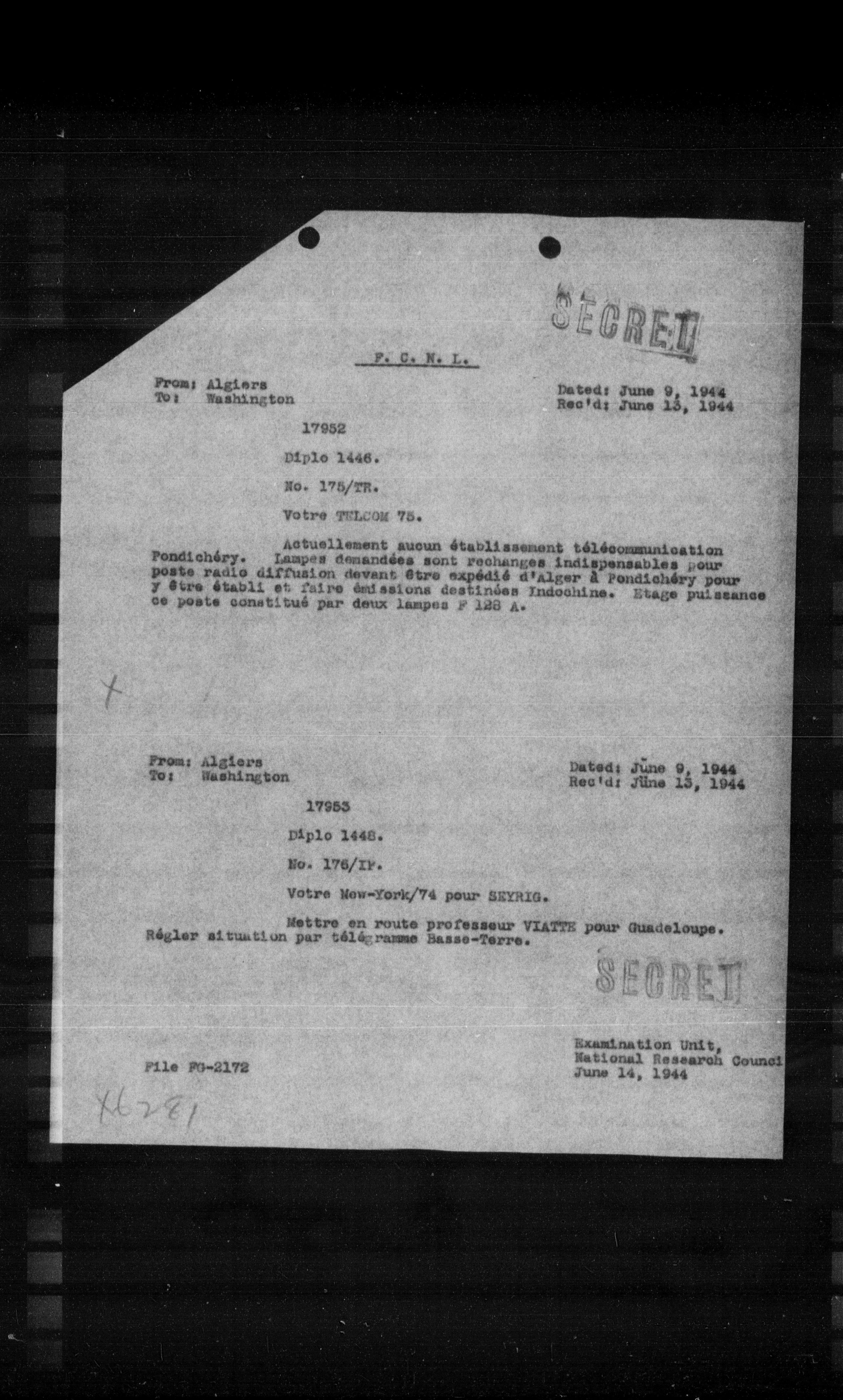 “Reel 17426 - Page 1259,” The Canadian Vichy Intercepts, accessed January 21, 2026, http://omeka.uottawa.ca/examination-unit/items/show/15673.