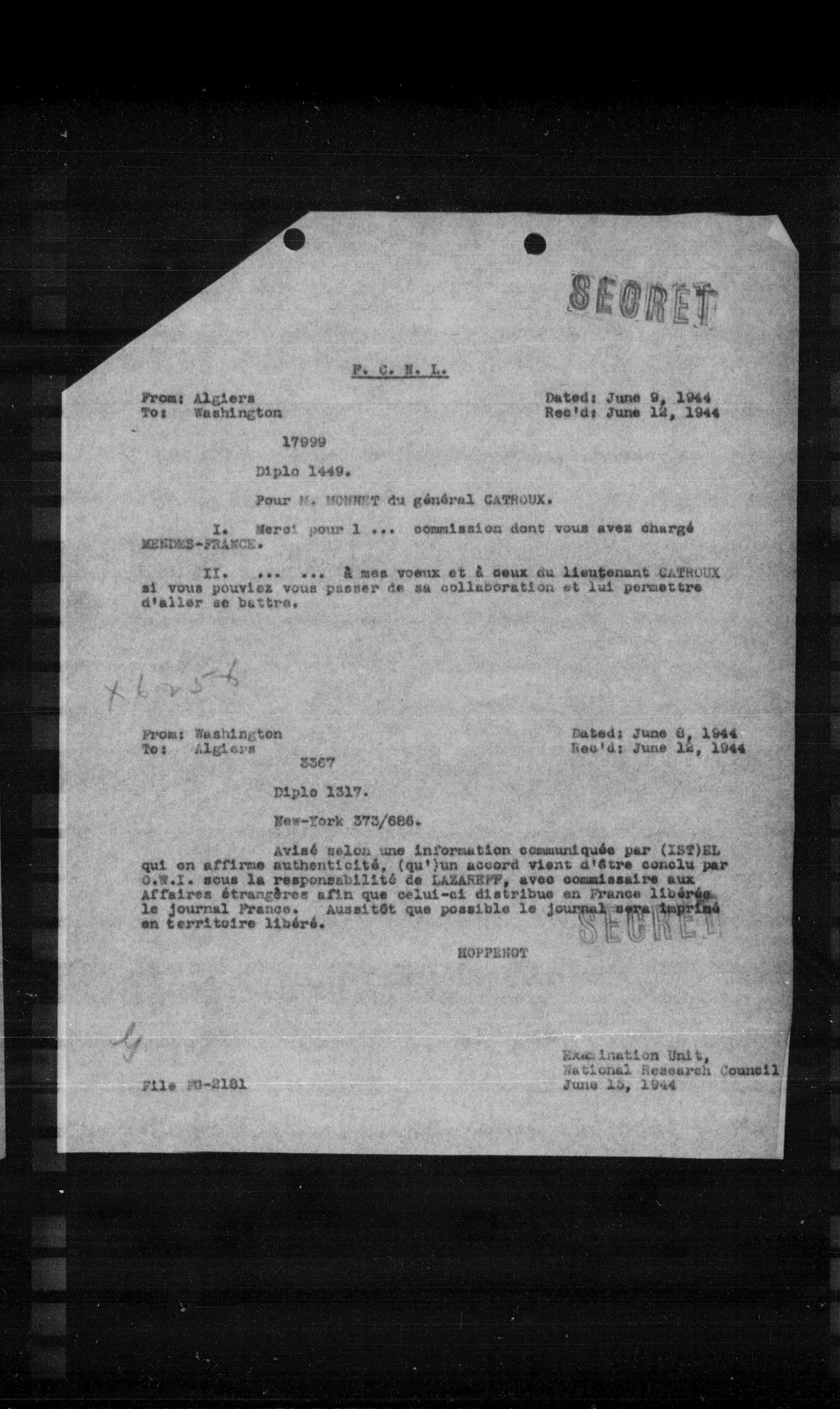 “Reel 17426 - Page 1271,” The Canadian Vichy Intercepts, accessed January 20, 2026, http://omeka.uottawa.ca/examination-unit/items/show/15685.