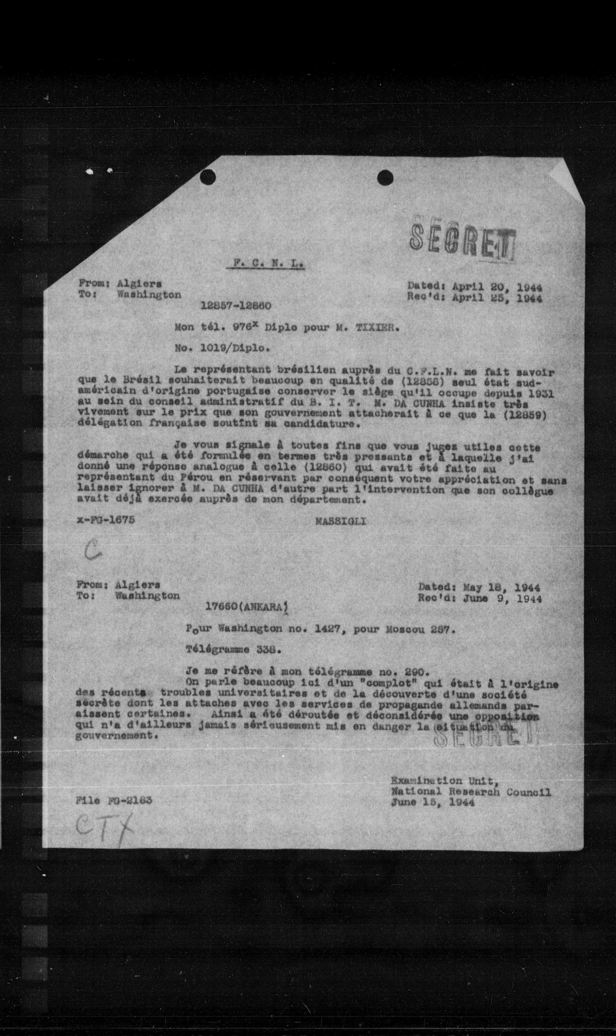 “Reel 17426 - Page 1273,” The Canadian Vichy Intercepts, accessed January 20, 2026, http://omeka.uottawa.ca/examination-unit/items/show/15687.