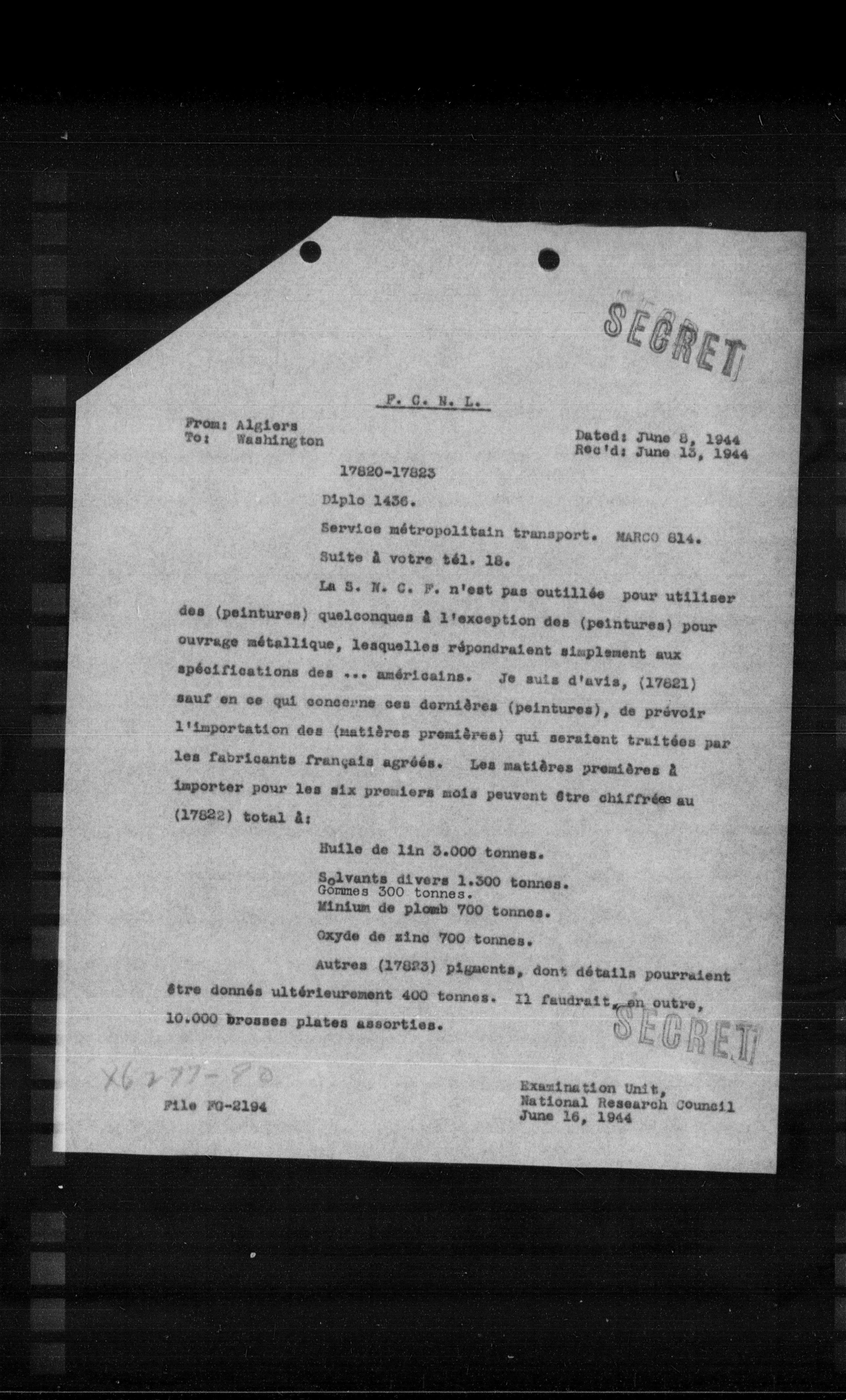 “Reel 17426 - Page 1285,” The Canadian Vichy Intercepts, accessed January 19, 2026, http://omeka.uottawa.ca/examination-unit/items/show/15699.