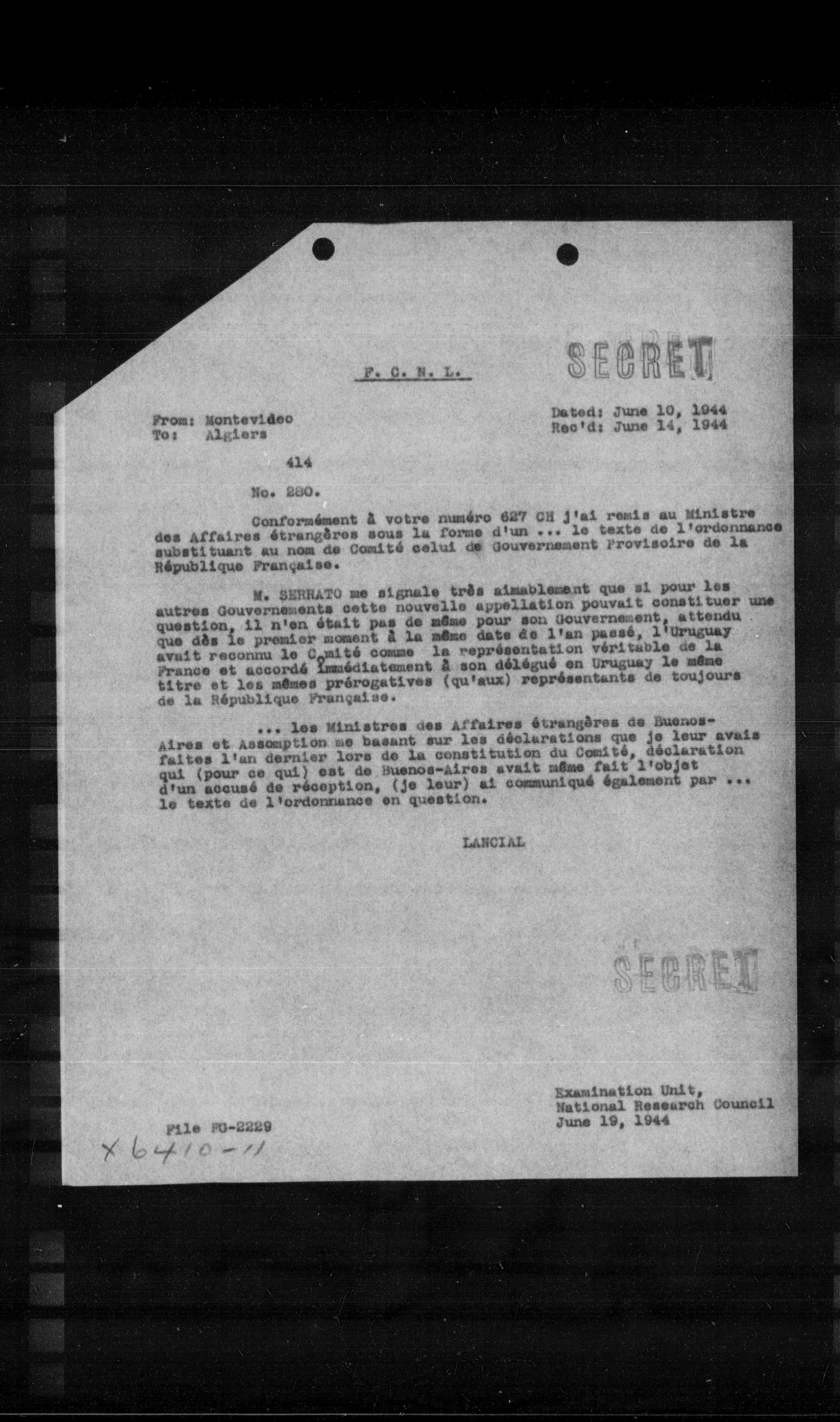 Rec'd: June 14, 1944