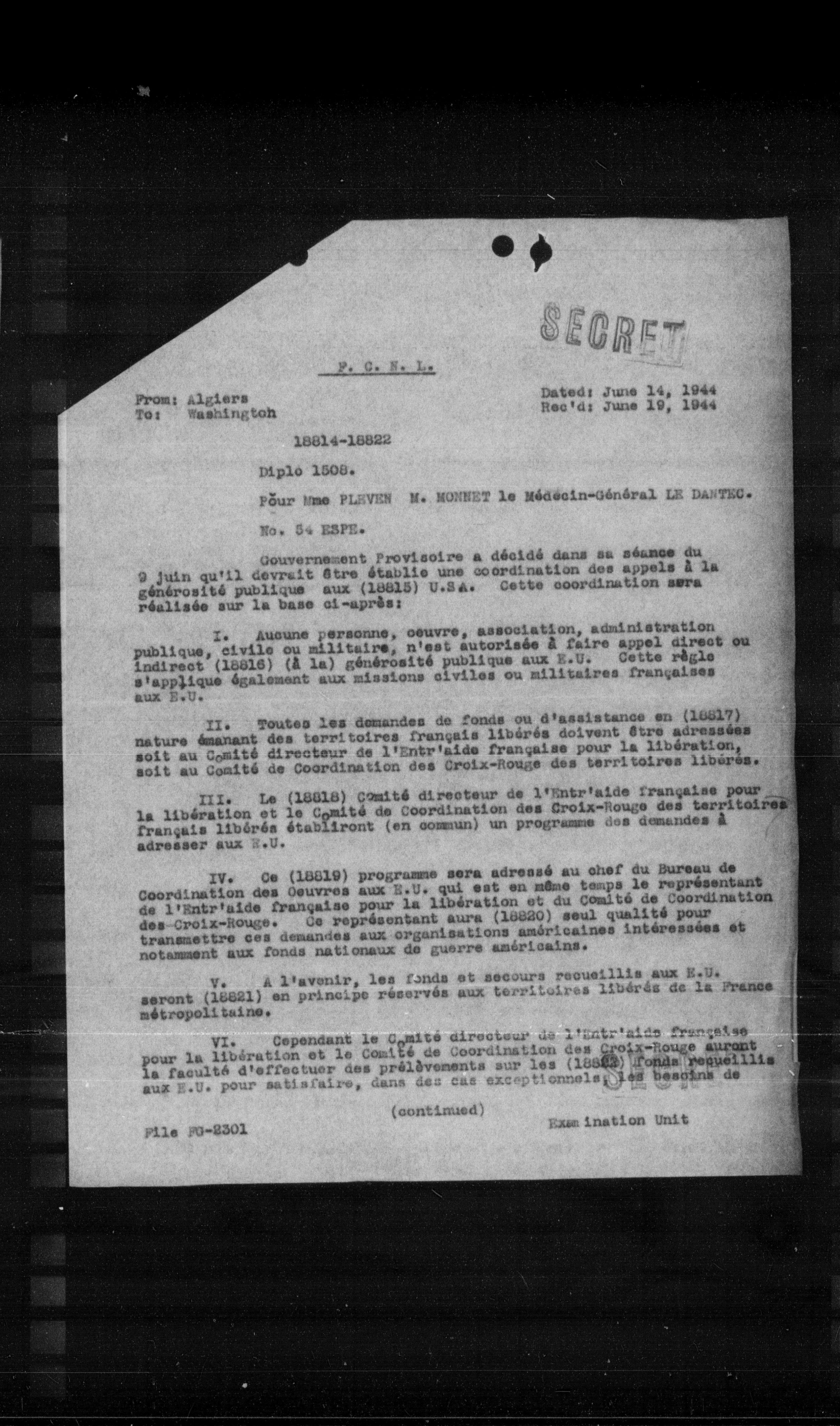 Gouvernement Provisoire a décidé dans sa séance du 9 juin qu'il devrait être établie une coordination des appels à la générosité publique aux (18815) U.S.A. Cette coordination sera réalisée sur la base ci-après: