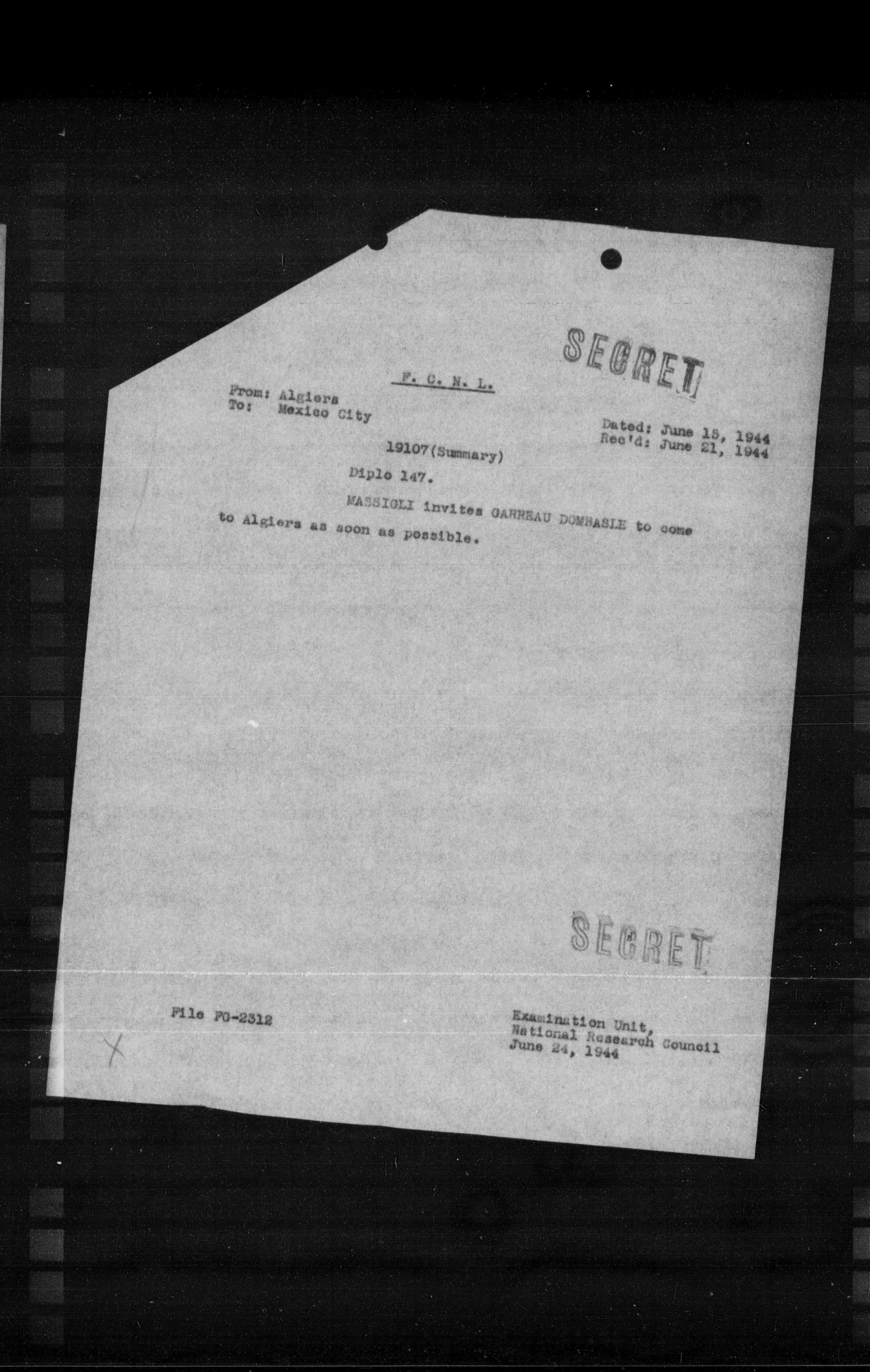 **Dated:** June 15, 1944 **Rec'd:** June 21, 1944