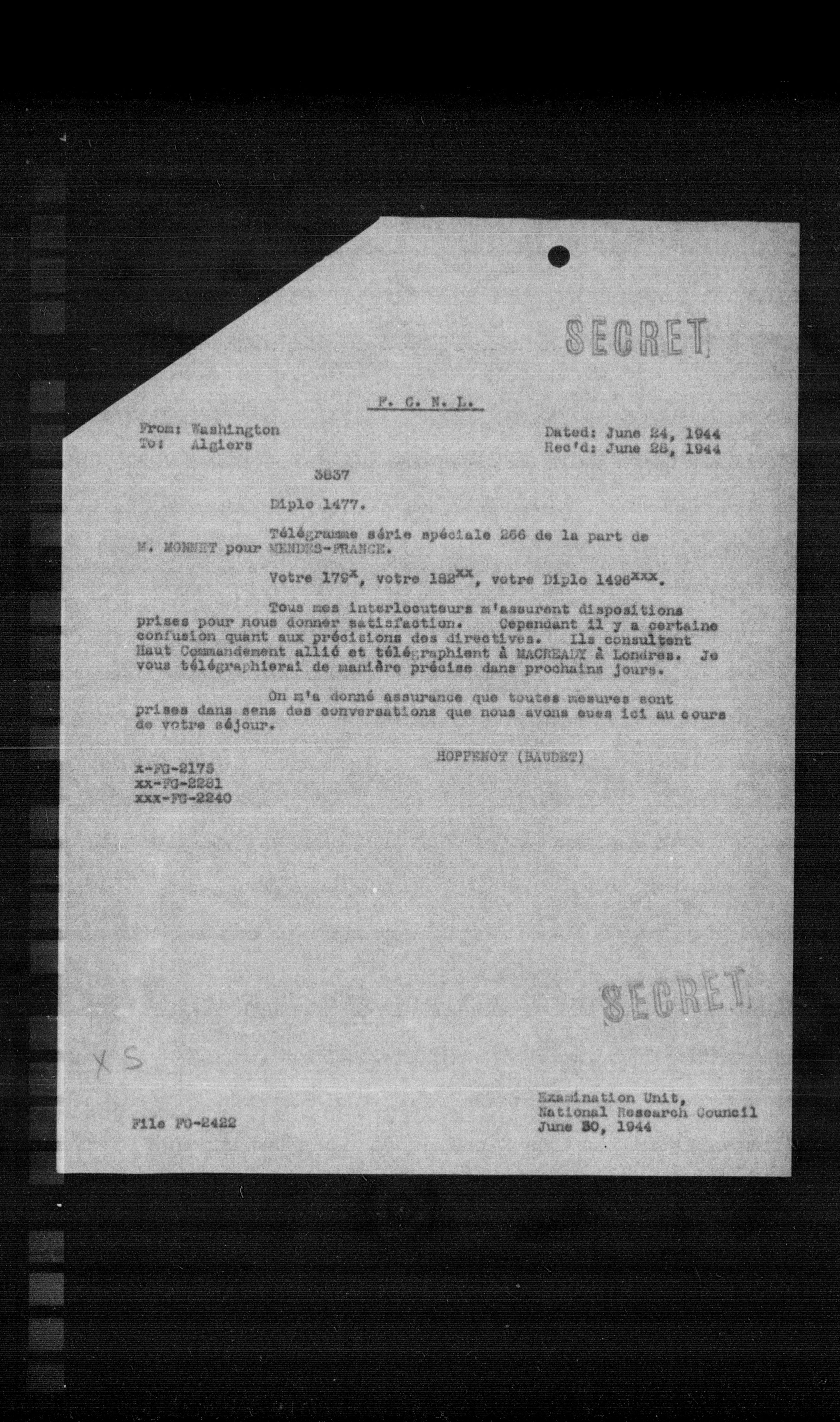 “Reel 17426 - Page 1551,” The Canadian Vichy Intercepts, accessed December 20, 2025, http://omeka.uottawa.ca/examination-unit/items/show/15965.