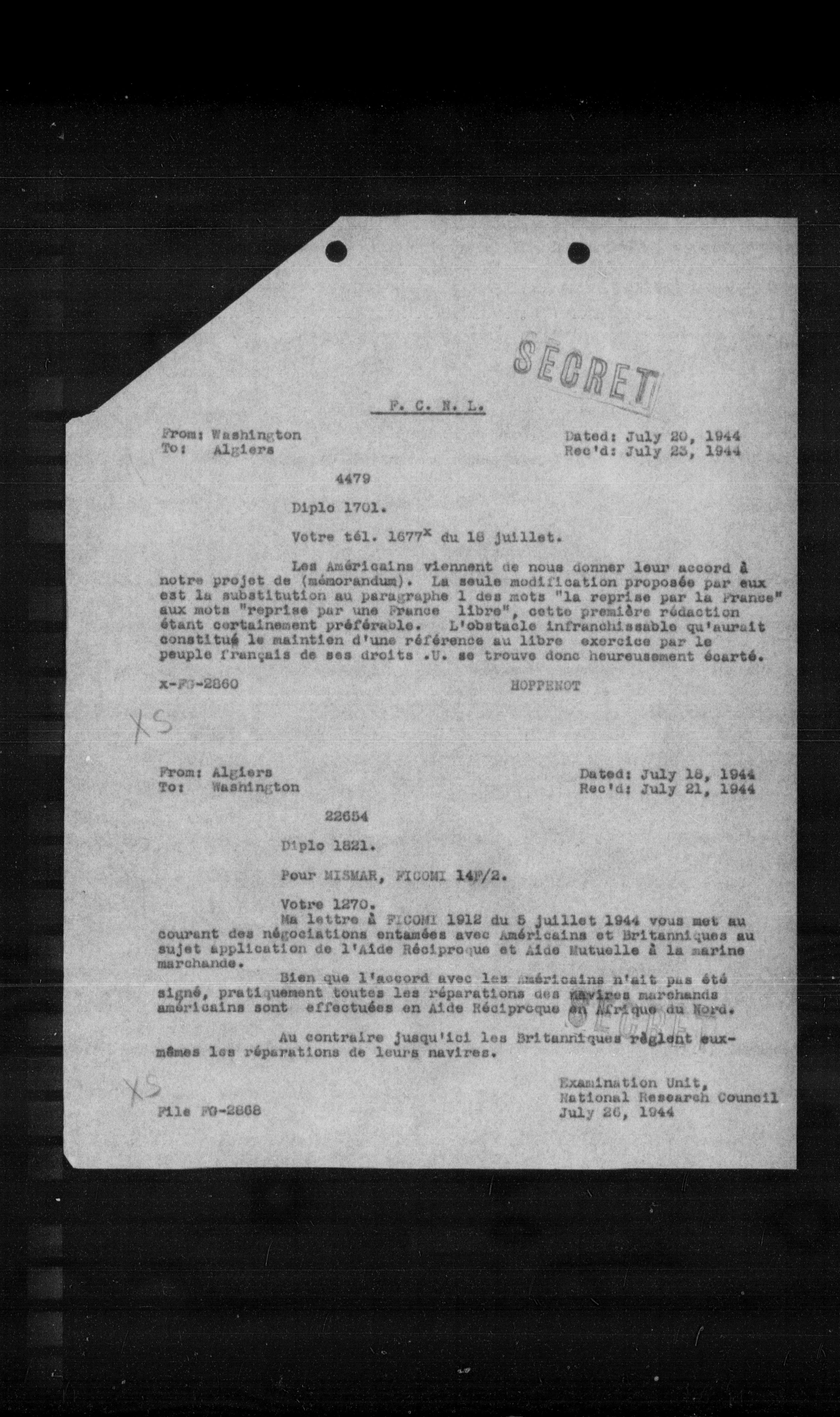 Ma lettre à FIGONI 1912 du 5 juillet 1944 vous met au courant des négociations entamées avec Américains et Britanniques au sujet application de l'Aide Réciproque et Aide Mutuelle à la marine marchande.