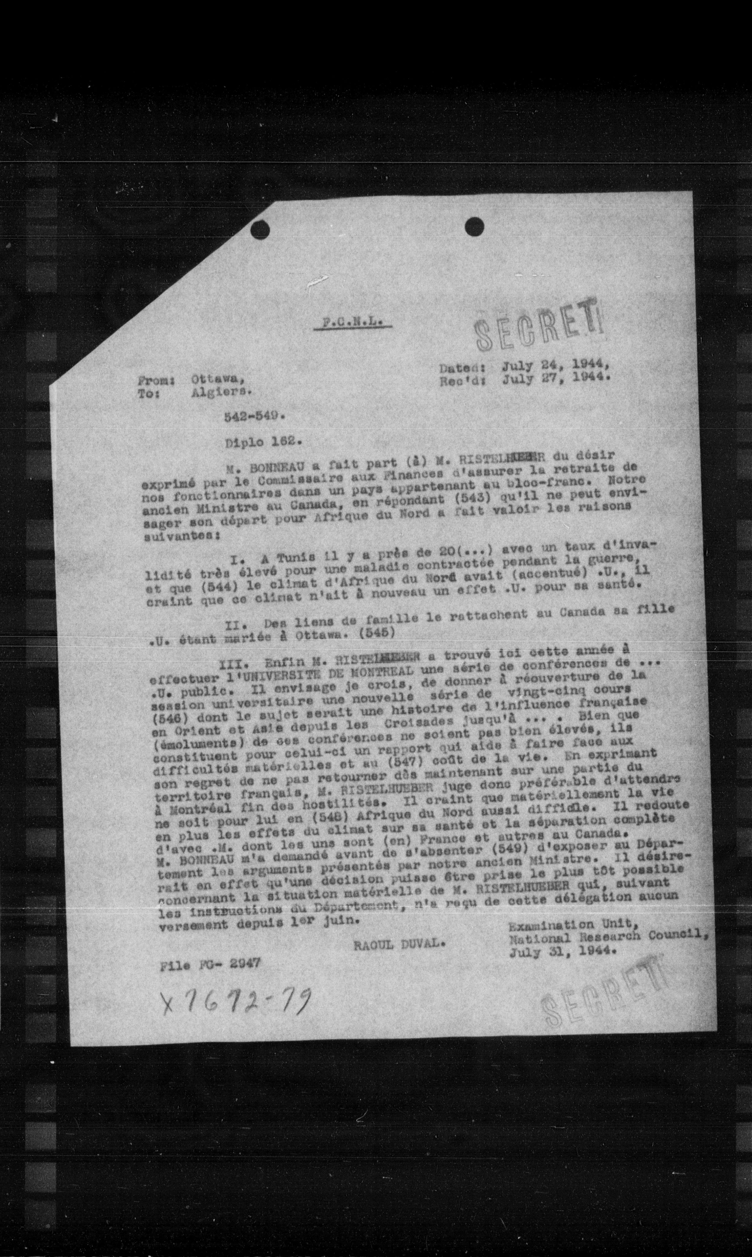 “Reel 17426 - Page 2149,” The Canadian Vichy Intercepts, accessed February 1, 2026, http://omeka.uottawa.ca/examination-unit/items/show/16563.