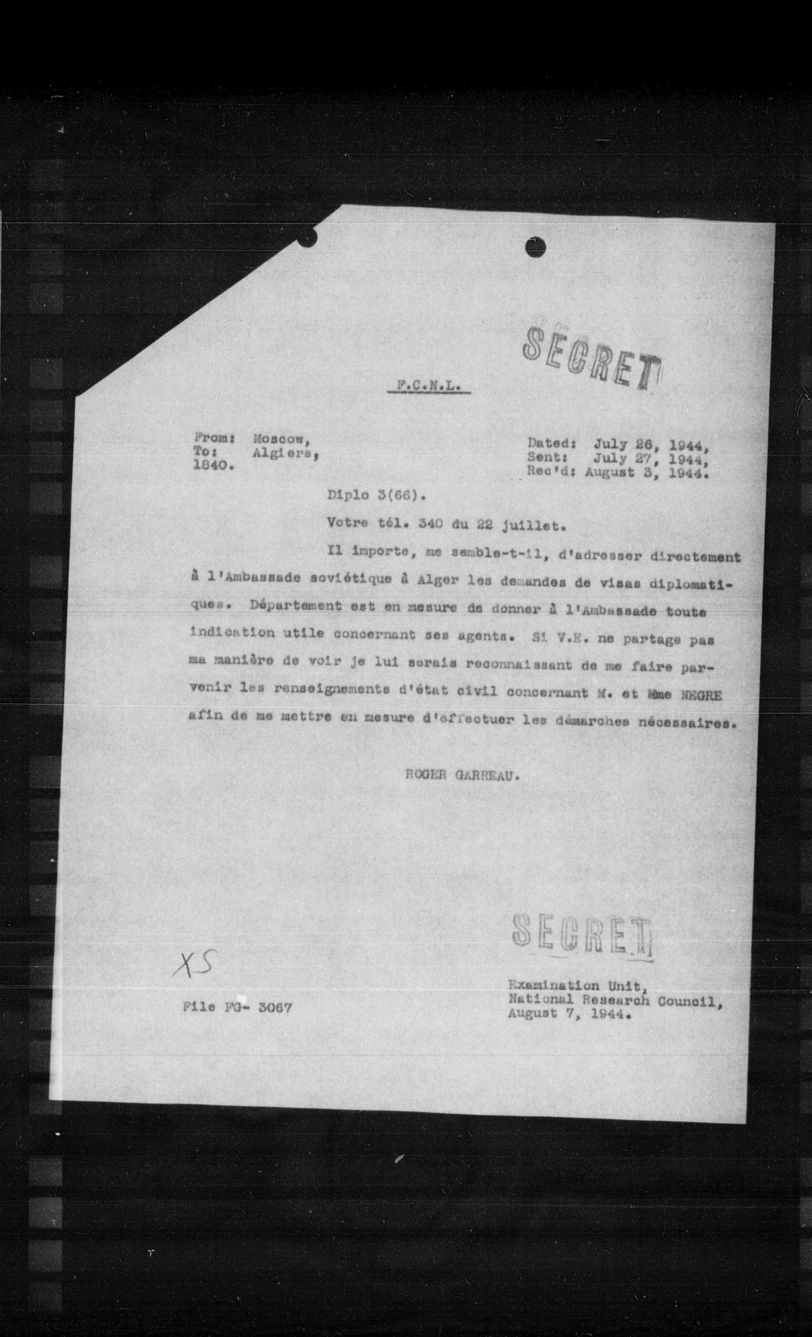 Examination Unit, National Research Council, August 7, 1944.