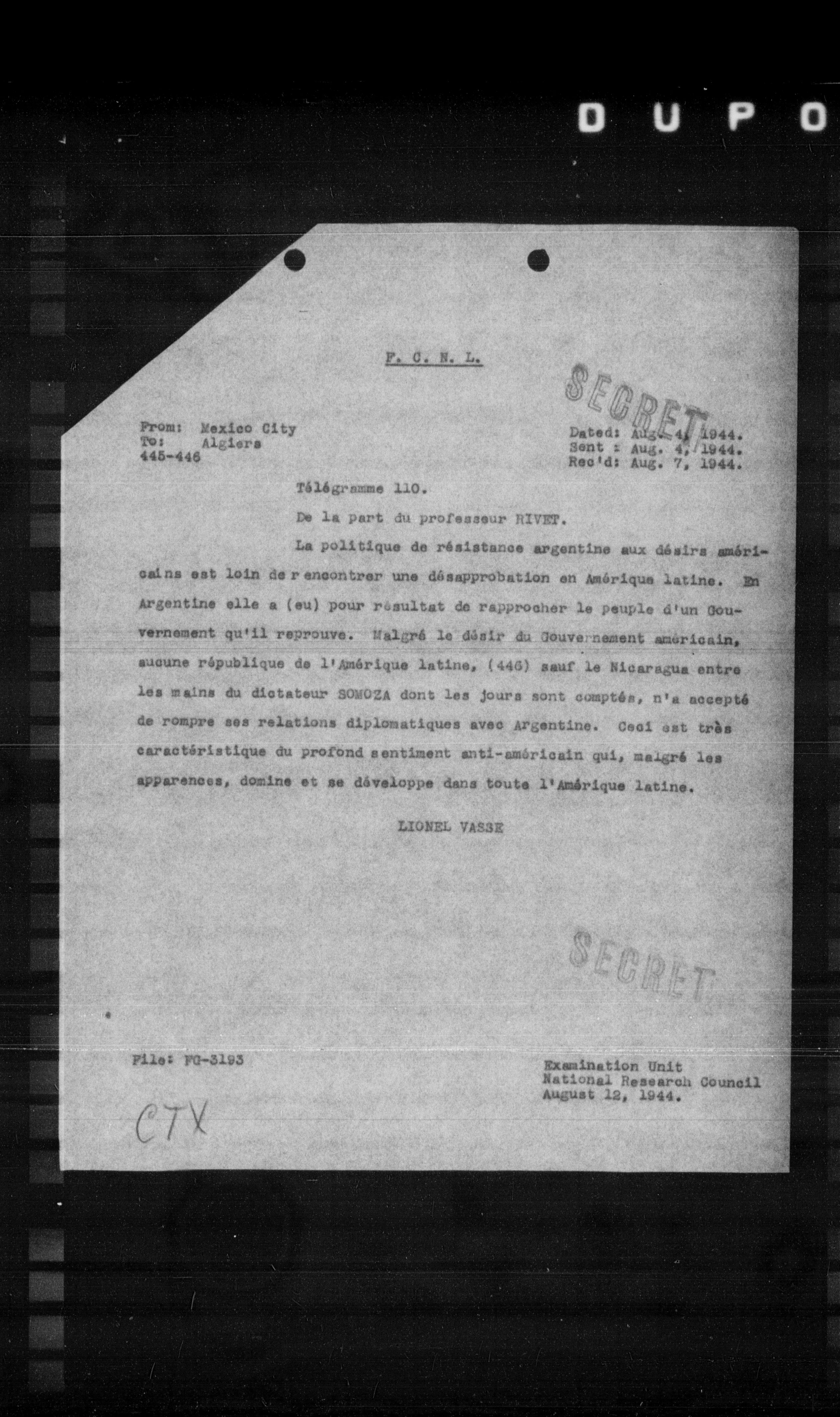 “Reel 17426 - Page 2428,” The Canadian Vichy Intercepts, accessed January 31, 2026, http://omeka.uottawa.ca/examination-unit/items/show/16842.