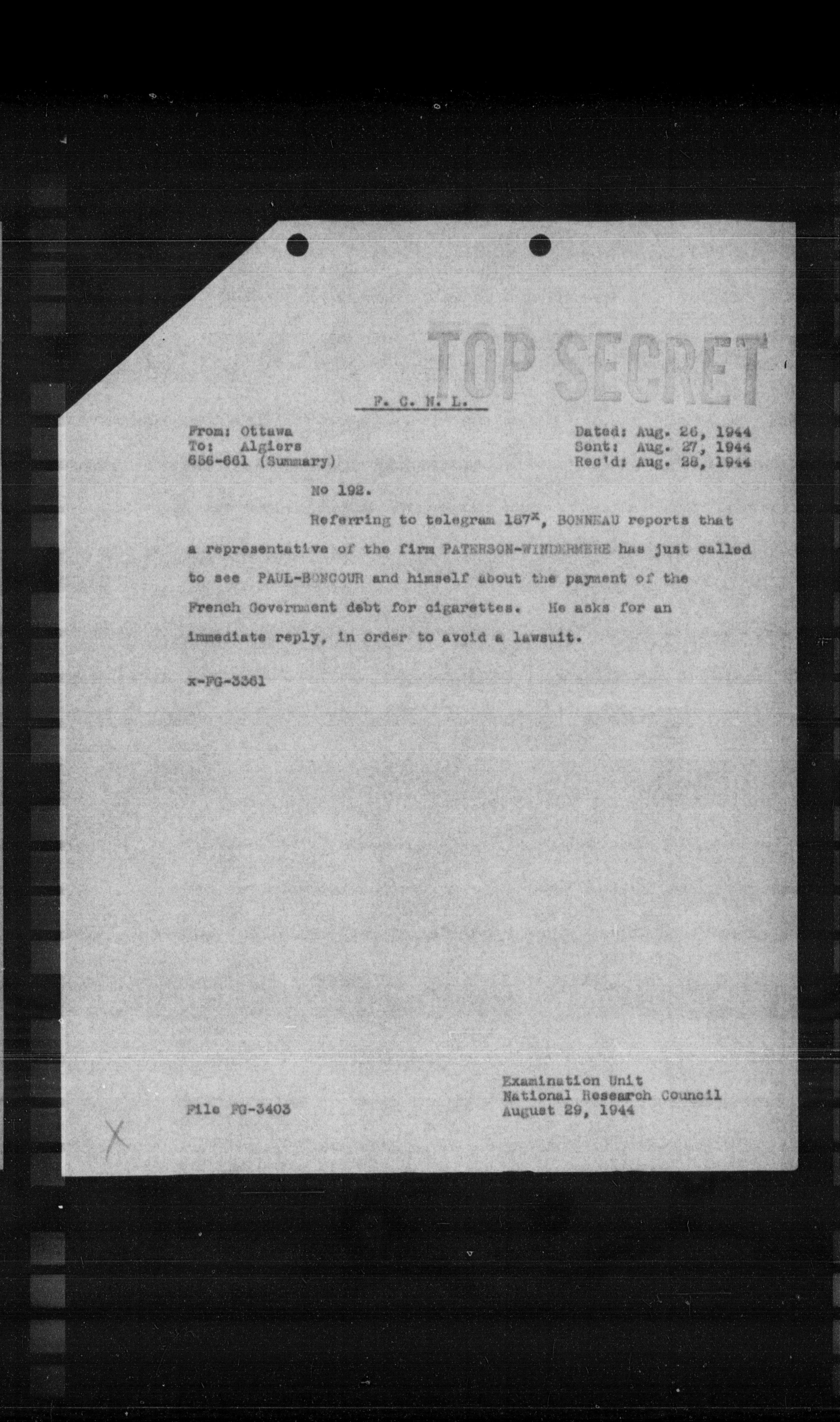 Sent: Aug. 27, 1944