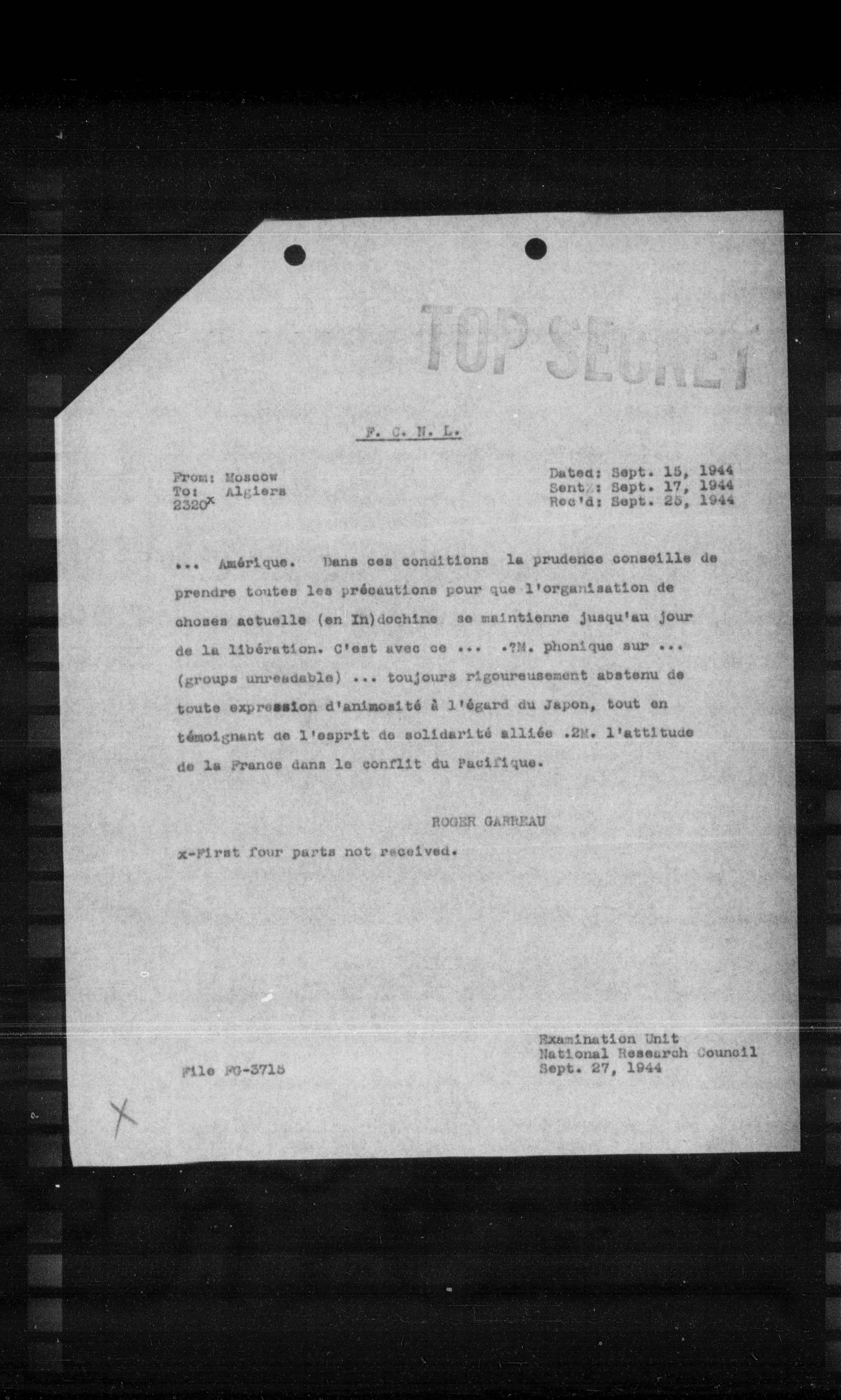 “Reel 17426 - Page 3015,” The Canadian Vichy Intercepts, accessed December 19, 2025, http://omeka.uottawa.ca/examination-unit/items/show/17429.