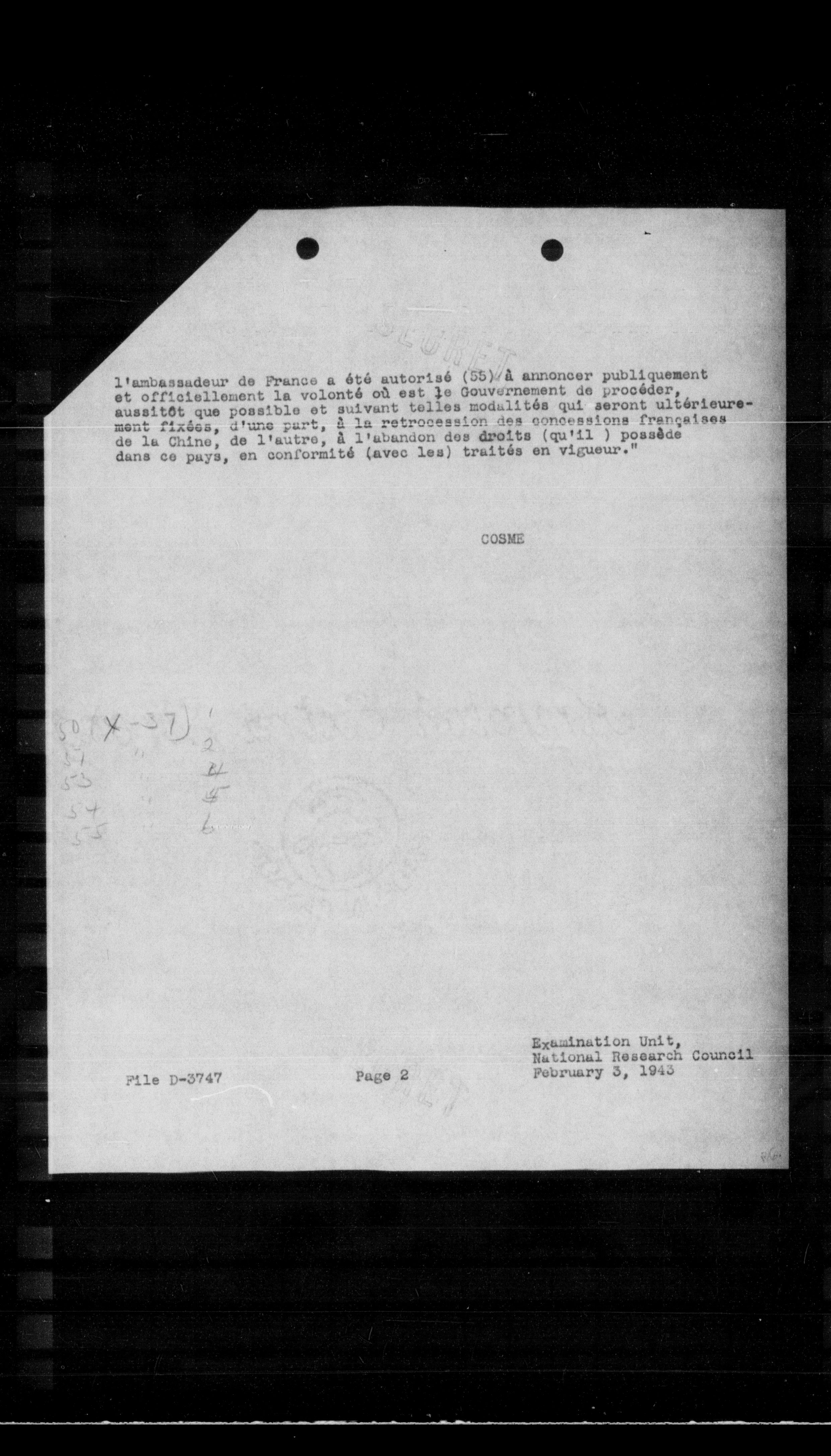 Examination Unit, National Research Council February 3, 1943