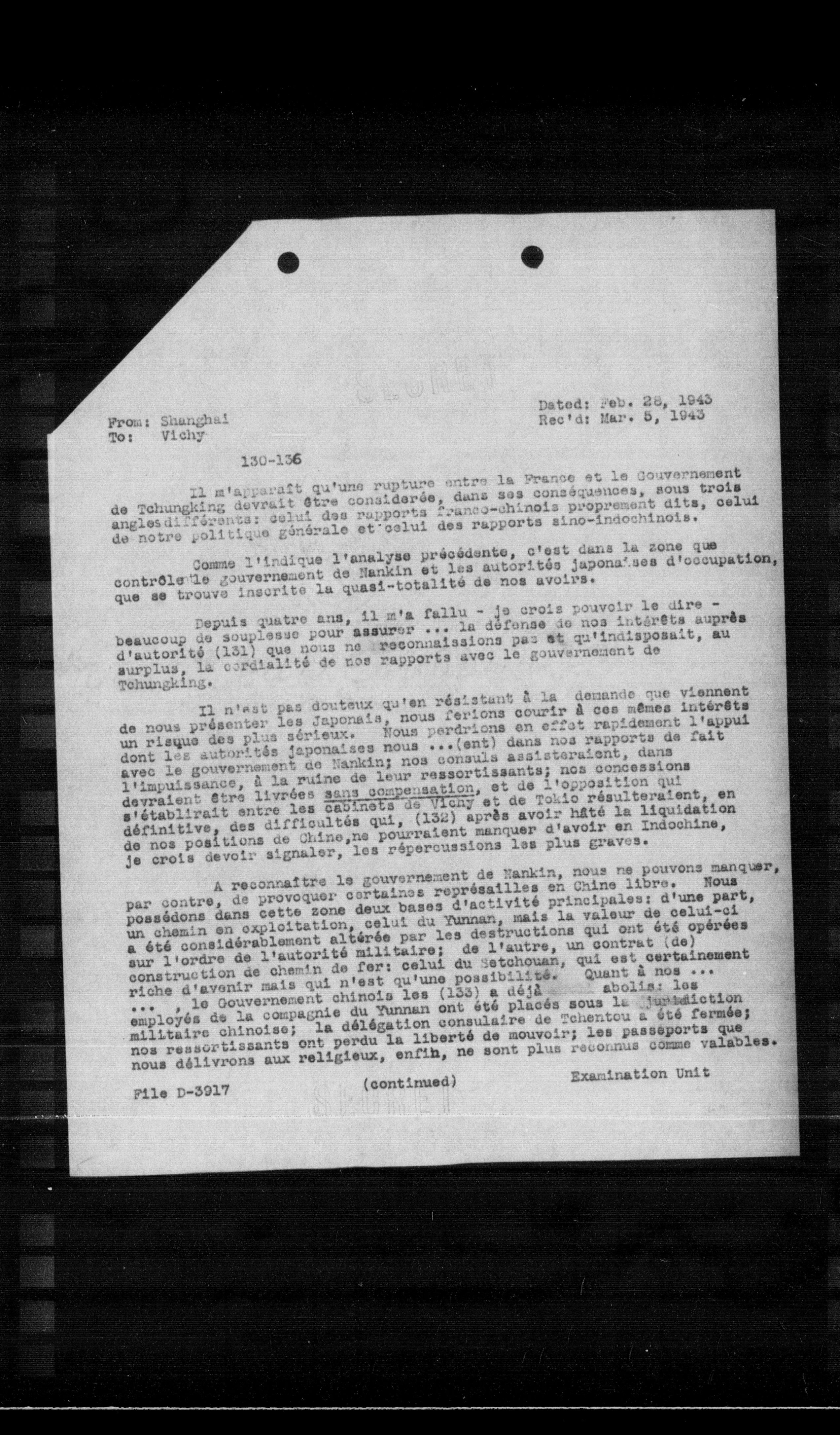 Rec'd: Mar. 5, 1943