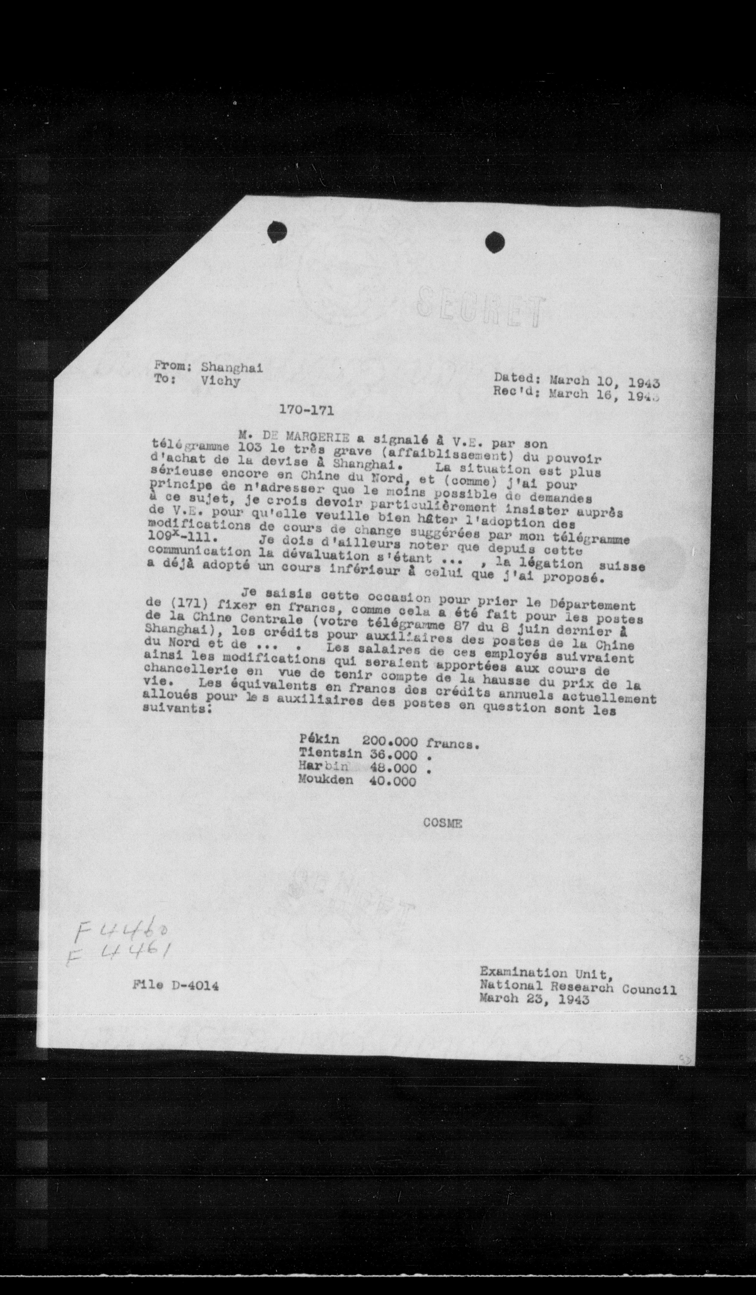 Rec'd: March 16, 1943