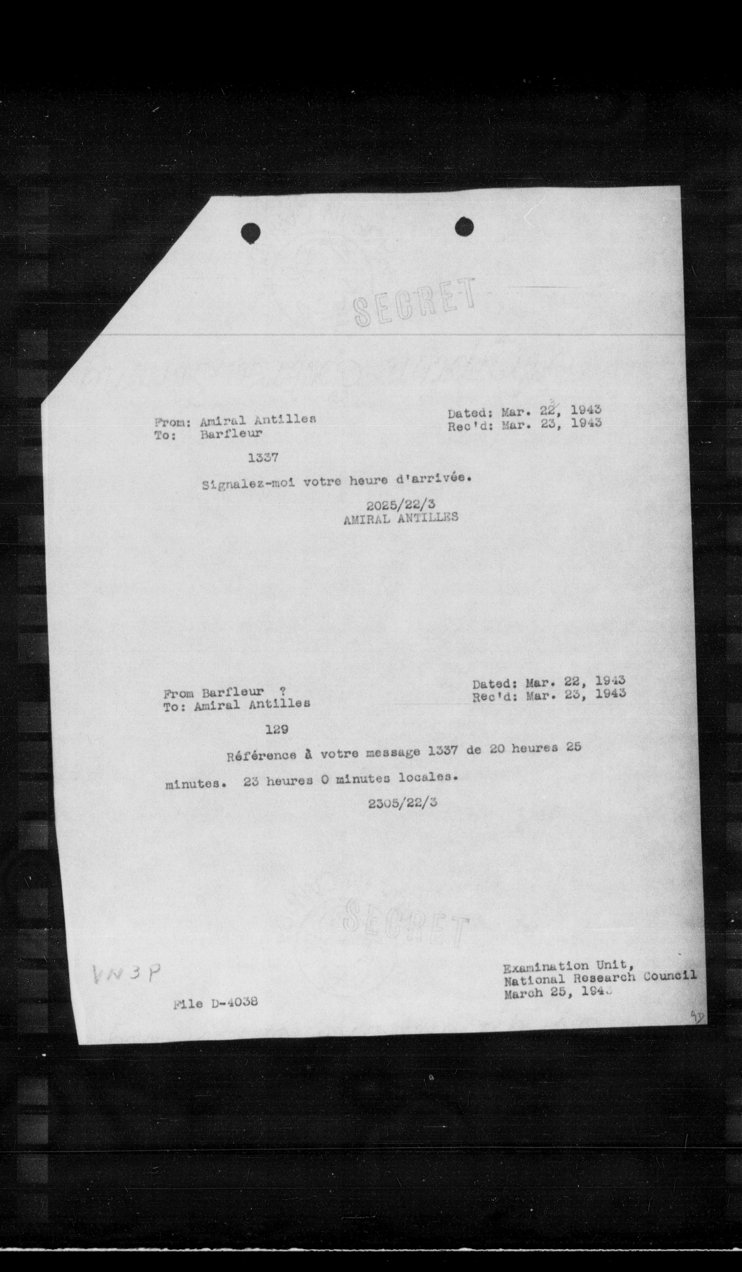 Rec'd: Mar. 23, 1943