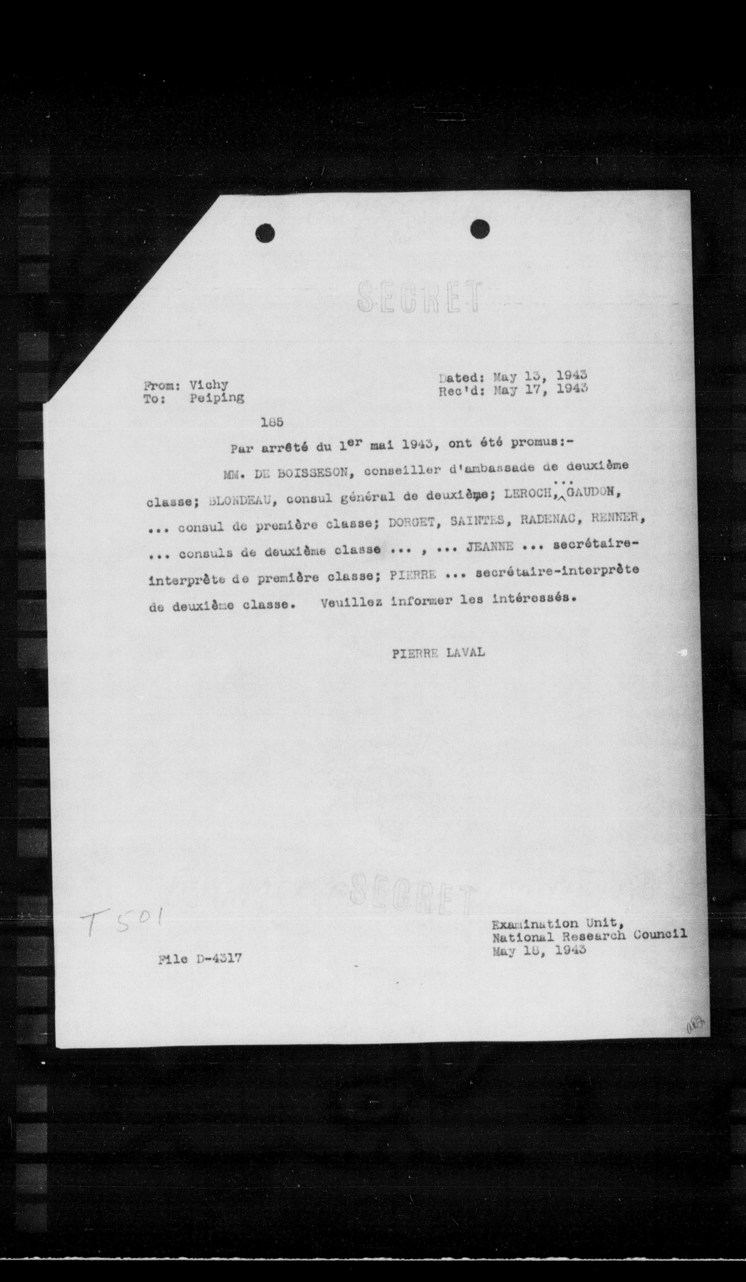 “Reel 17427 - Page 0598,” The Canadian Vichy Intercepts, accessed February 1, 2026, http://omeka.uottawa.ca/examination-unit/items/show/18192.