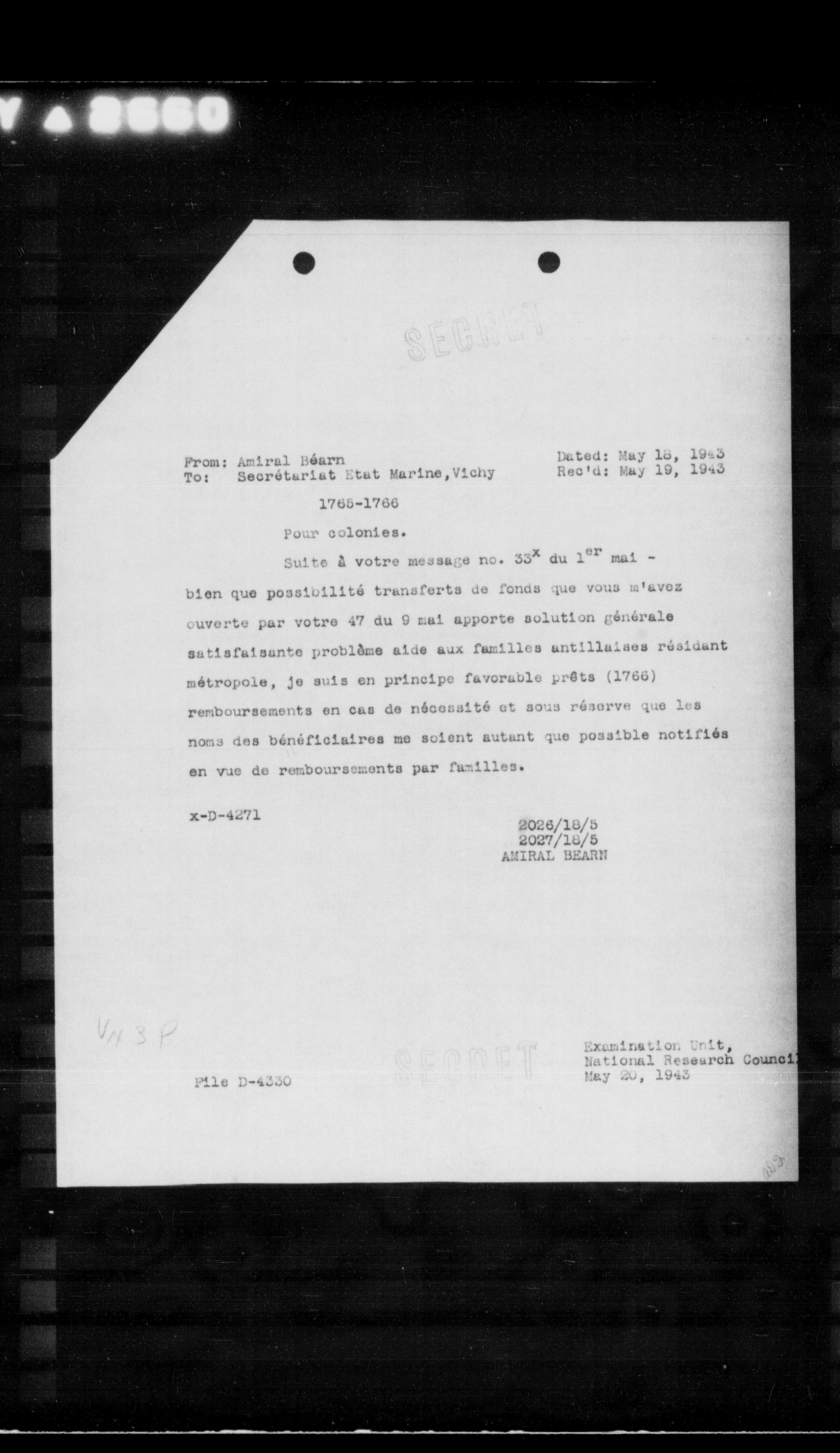“Reel 17427 - Page 0611,” The Canadian Vichy Intercepts, accessed January 31, 2026, http://omeka.uottawa.ca/examination-unit/items/show/18205.