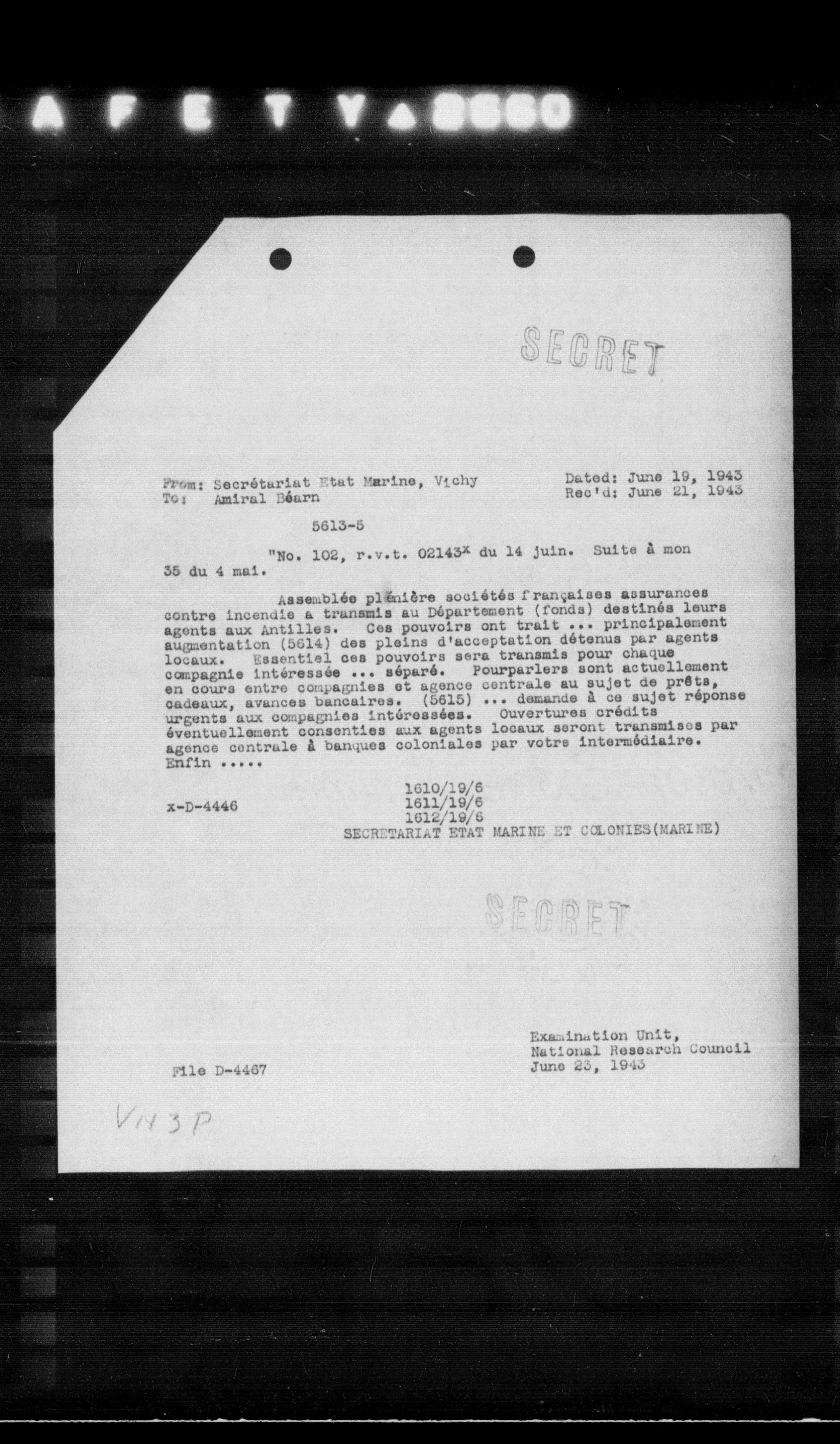 Reo'd: June 21, 1943