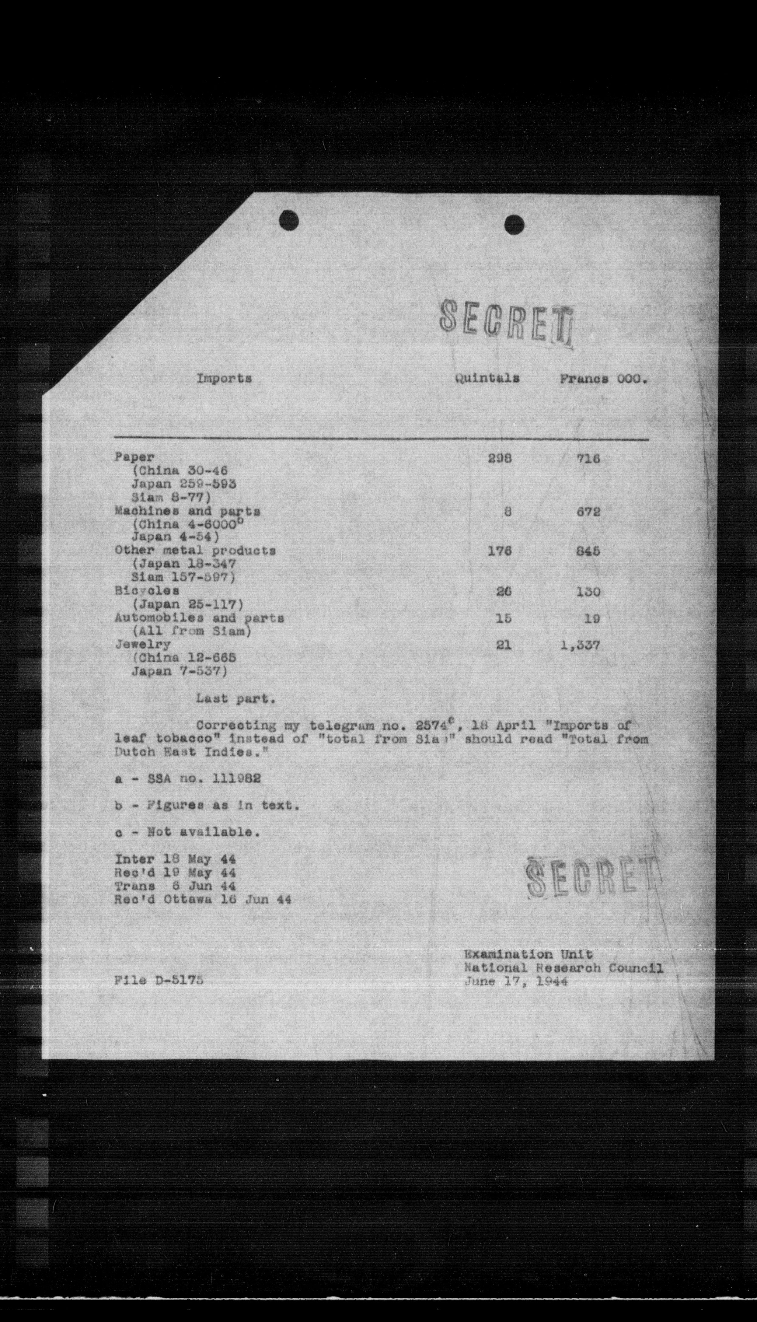Last part. Correcting my telegram no. 2574, 18 April "Imports of