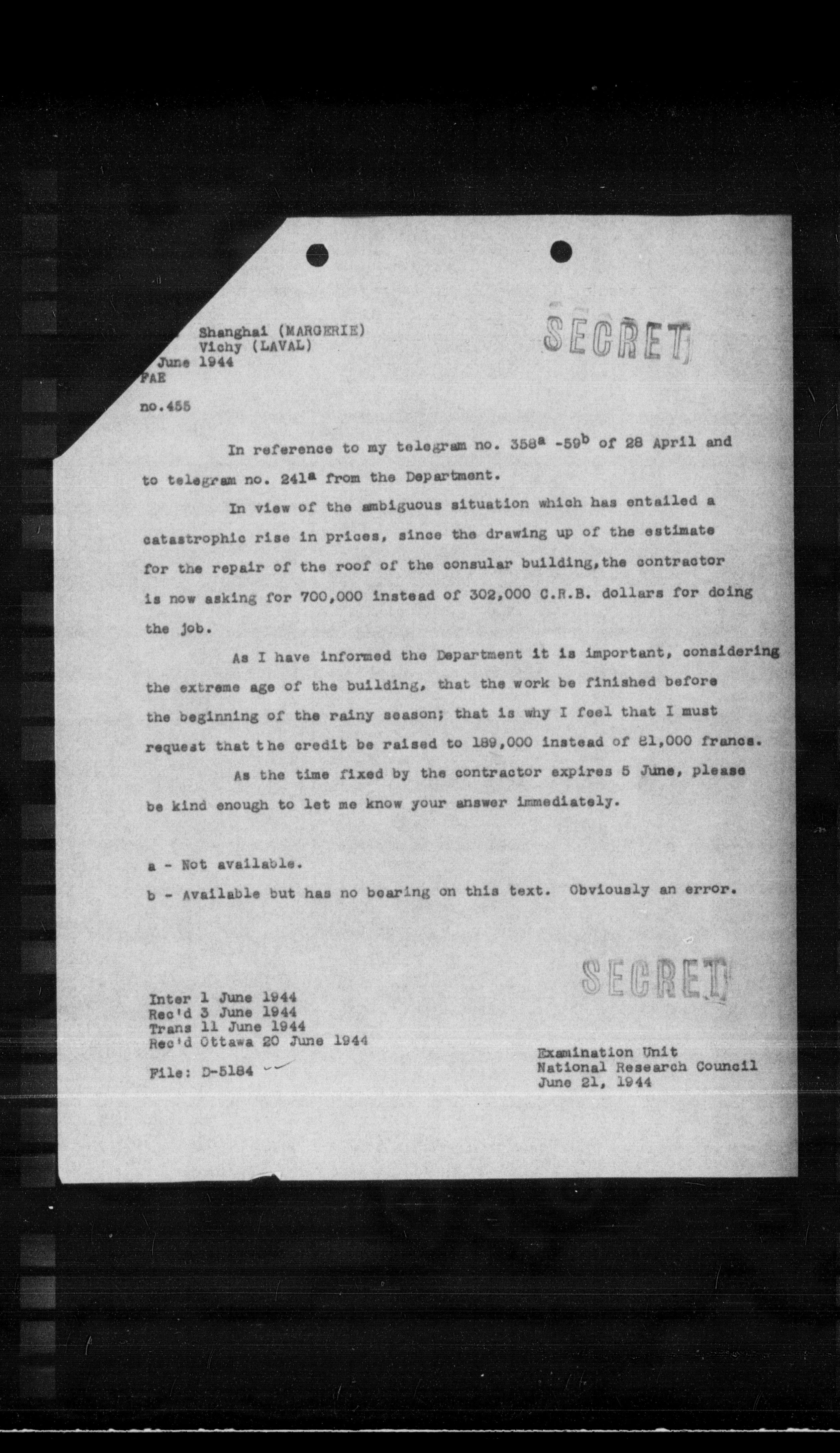 “Reel 17427 - Page 1526,” The Canadian Vichy Intercepts, accessed December 28, 2025, http://omeka.uottawa.ca/examination-unit/items/show/19120.
