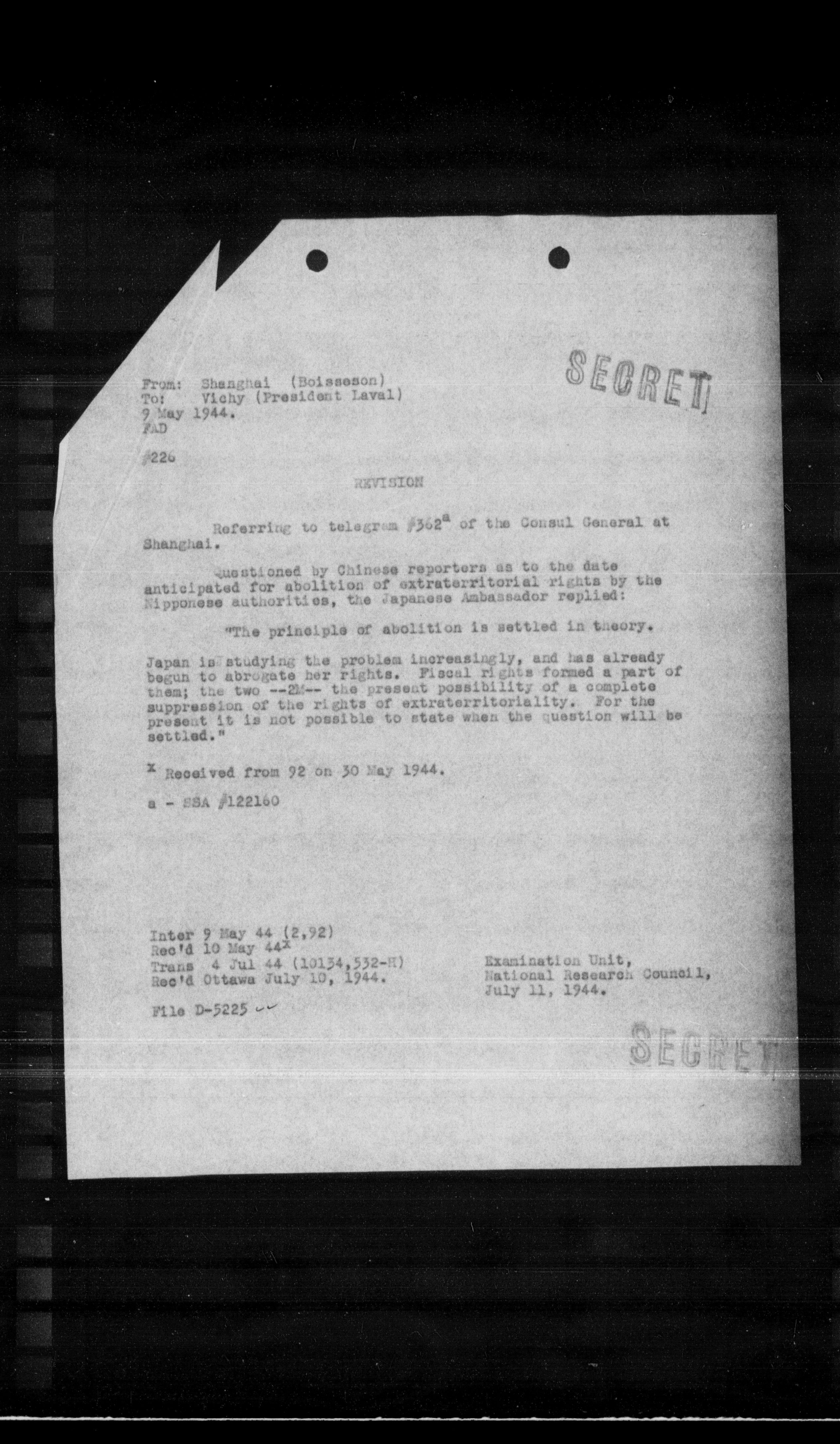 Rec'd Ottawa July 10, 1944.