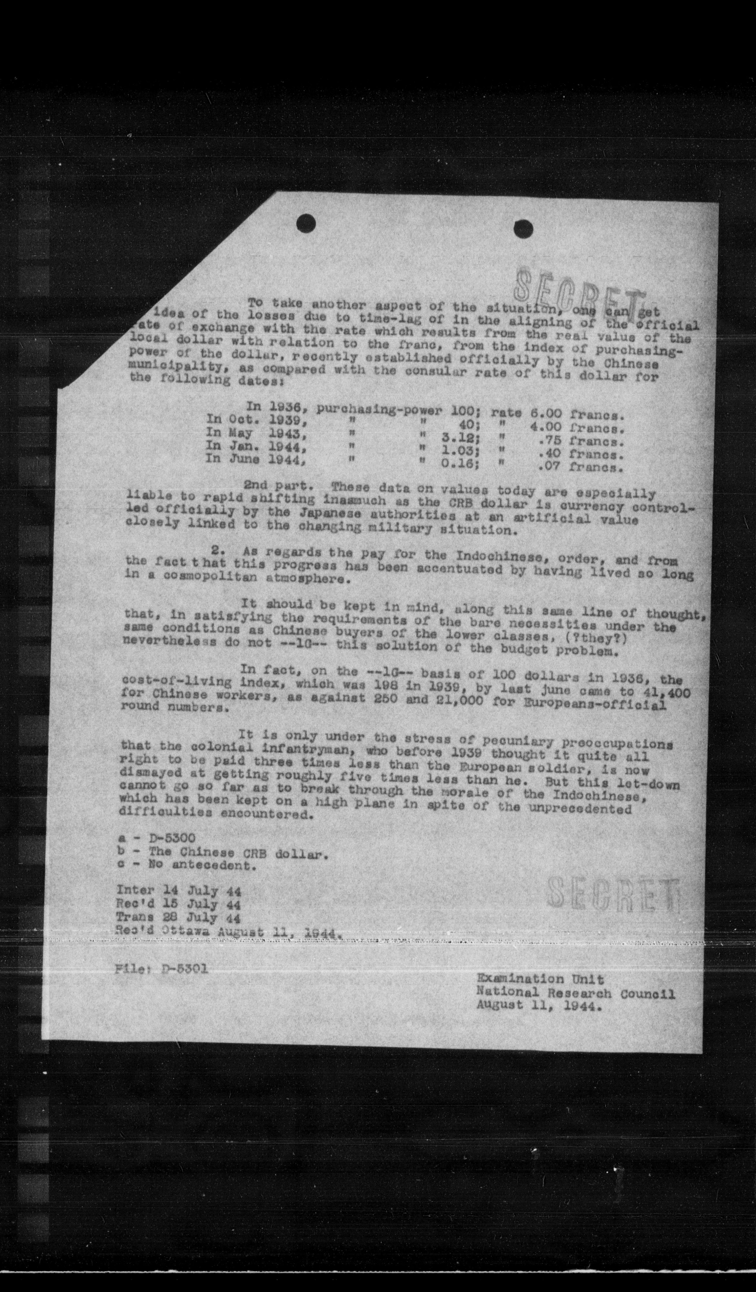 Inter 14 July 44 Rec'd 15 July 44 Trans 26 July 44 Rec'd Ottawa August 11, 1944.
