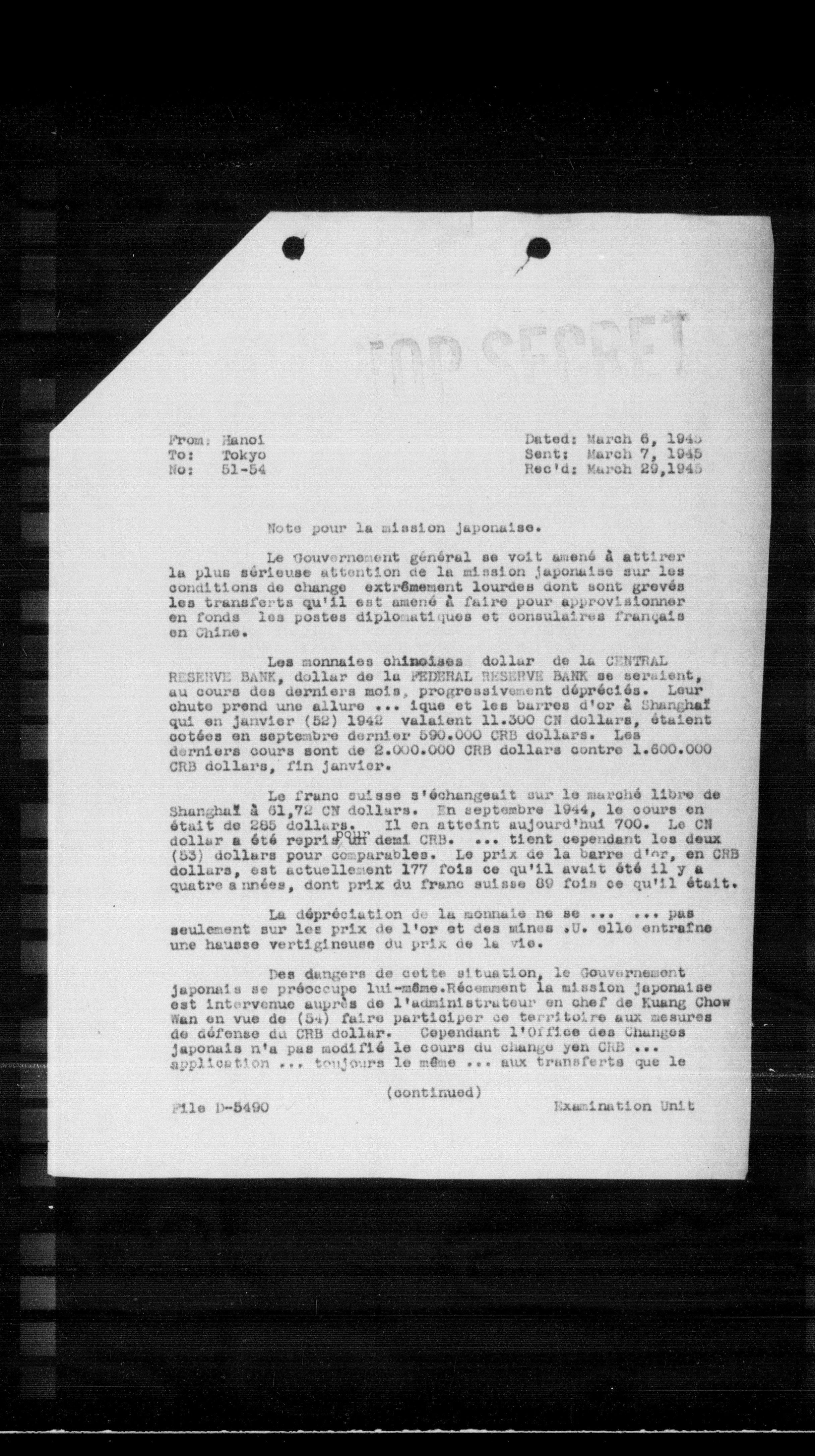 Shanghai à 61,72 CN dollars. En septembre 1944, le cours en