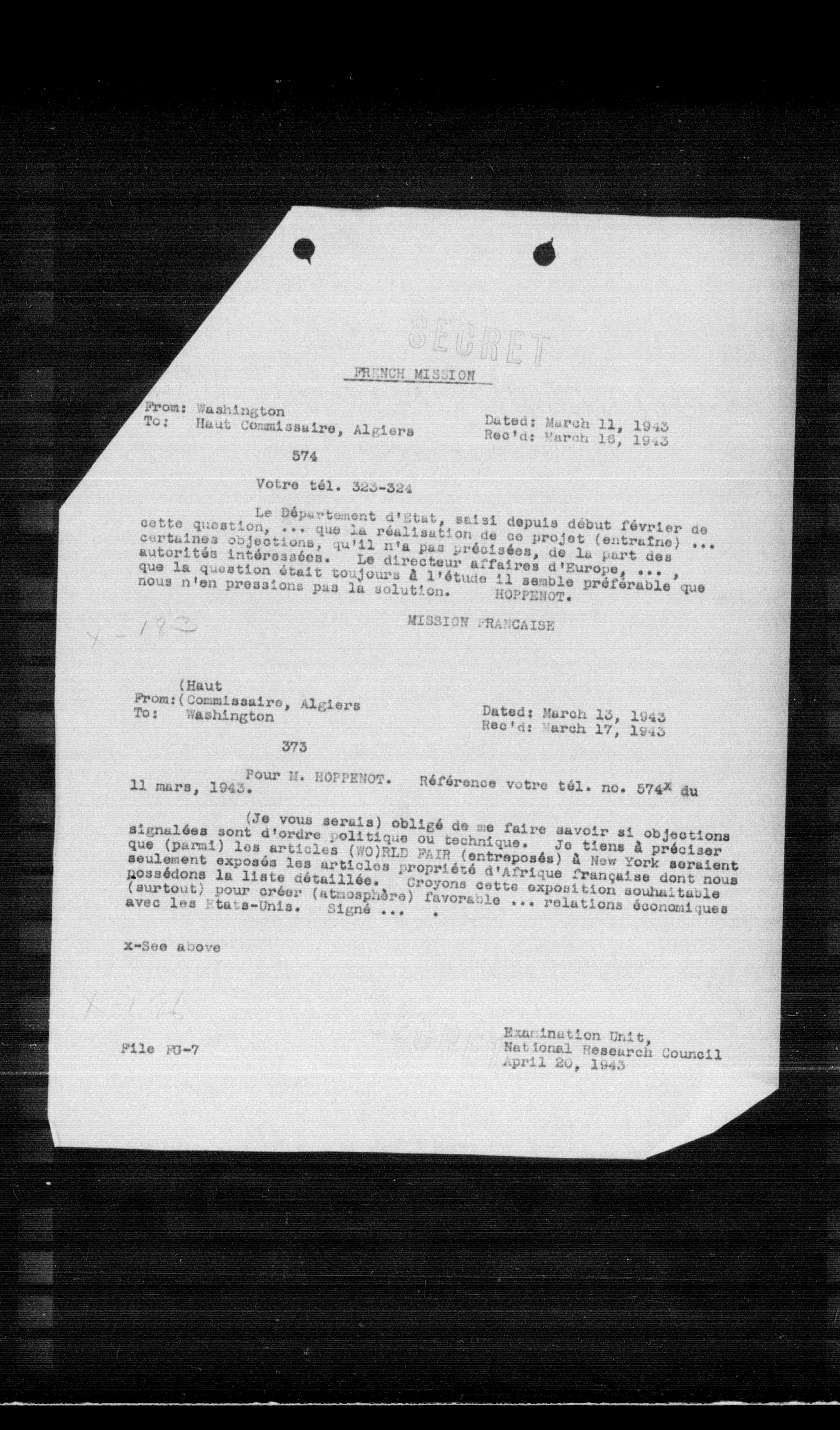 | From: (Commissaire, Algiers | Dated: March 13, 1943 |
