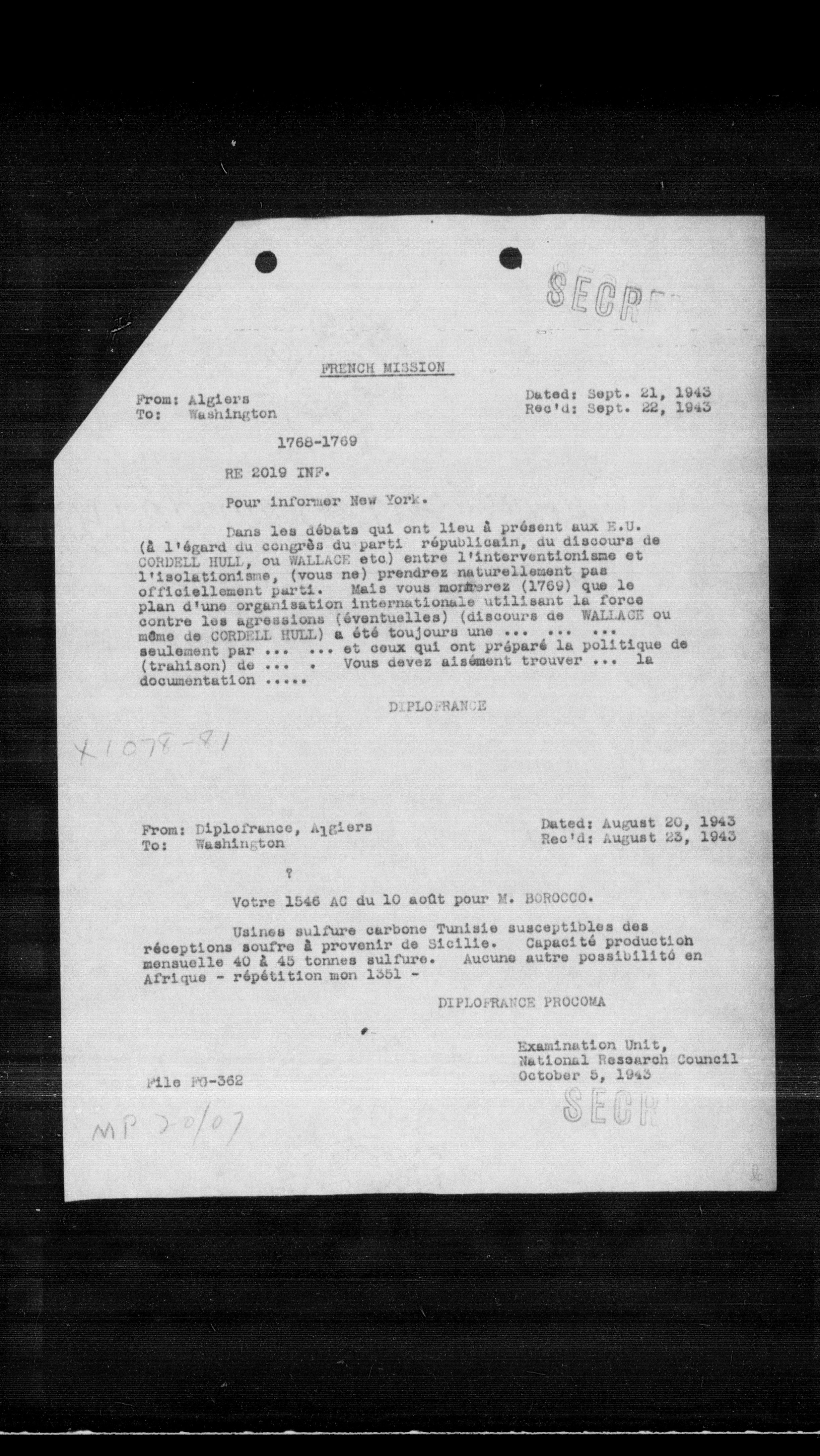 “Reel 17427 - Page 2274,” The Canadian Vichy Intercepts, accessed December 29, 2025, http://omeka.uottawa.ca/examination-unit/items/show/19868.
