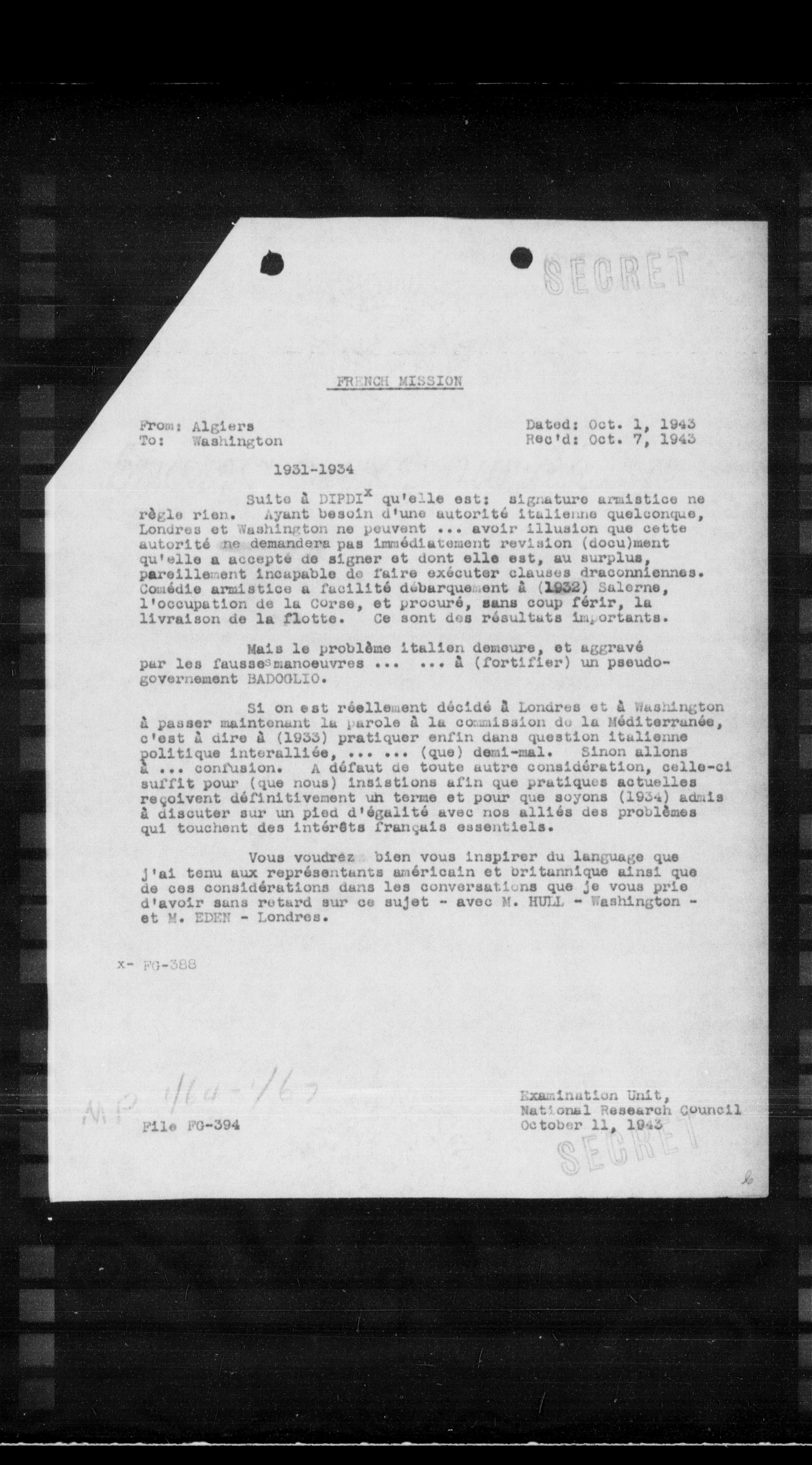 Suite à DIPDIX qu'elle est; signature armistice ne règle rien. Ayant besoin d'une autorité italienne quelconque, Londres et Washington ne peuvent ... avoir illusion que cette autorité de demander pas immédiatement revision (document qu'elle a accepté de signer et dont elle est, au surplus, pareillement incapable de faire exécuter clauses draconniennes. Comédie armistice a facilité débarquement à (1932) Salerne, l'occupation de la Corse, et procuré, sans coup férir, la livraison de la flotte. Ce sont des résultats importants.