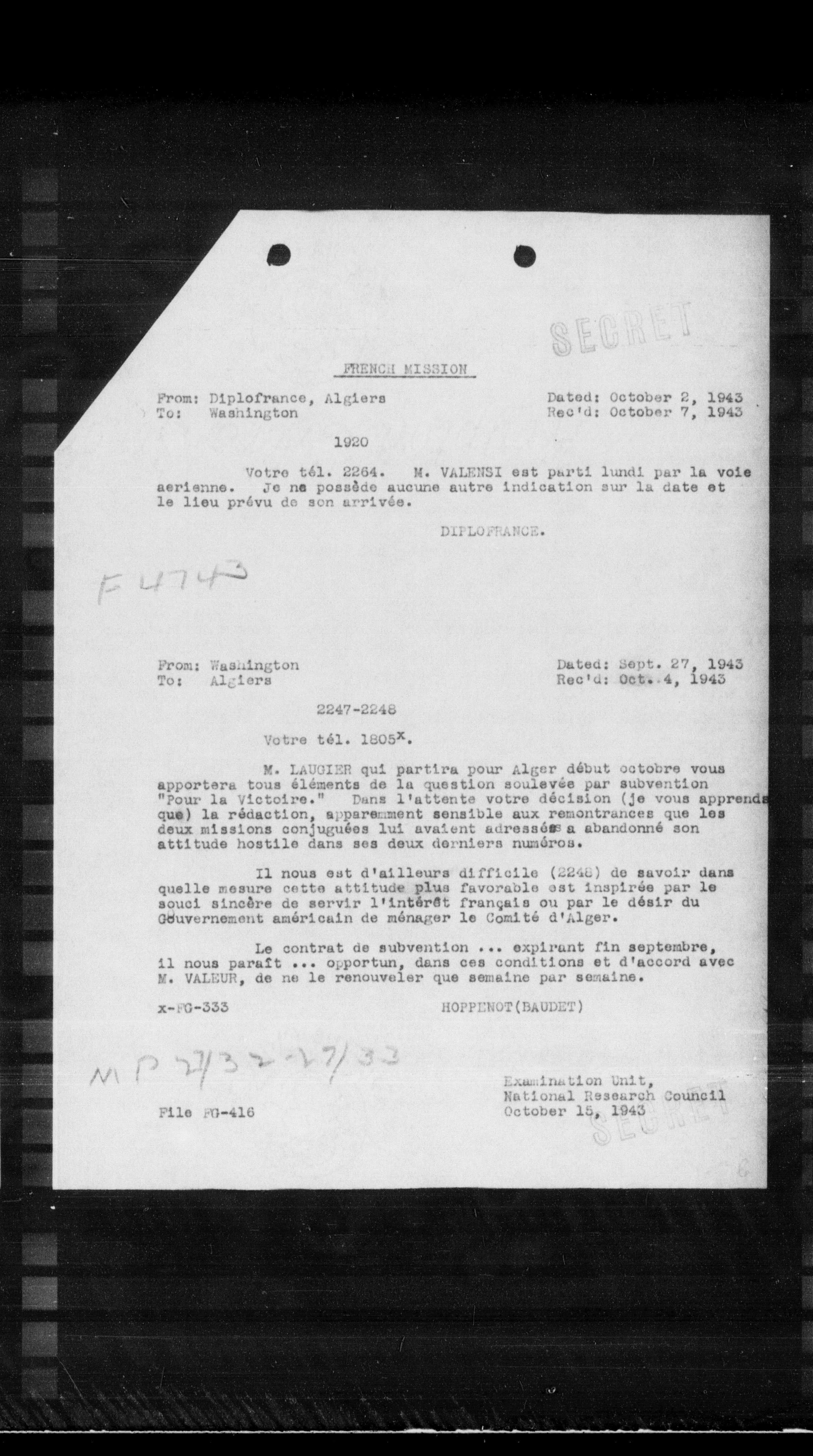 “Reel 17427 - Page 2408,” The Canadian Vichy Intercepts, accessed January 21, 2026, http://omeka.uottawa.ca/examination-unit/items/show/20002.