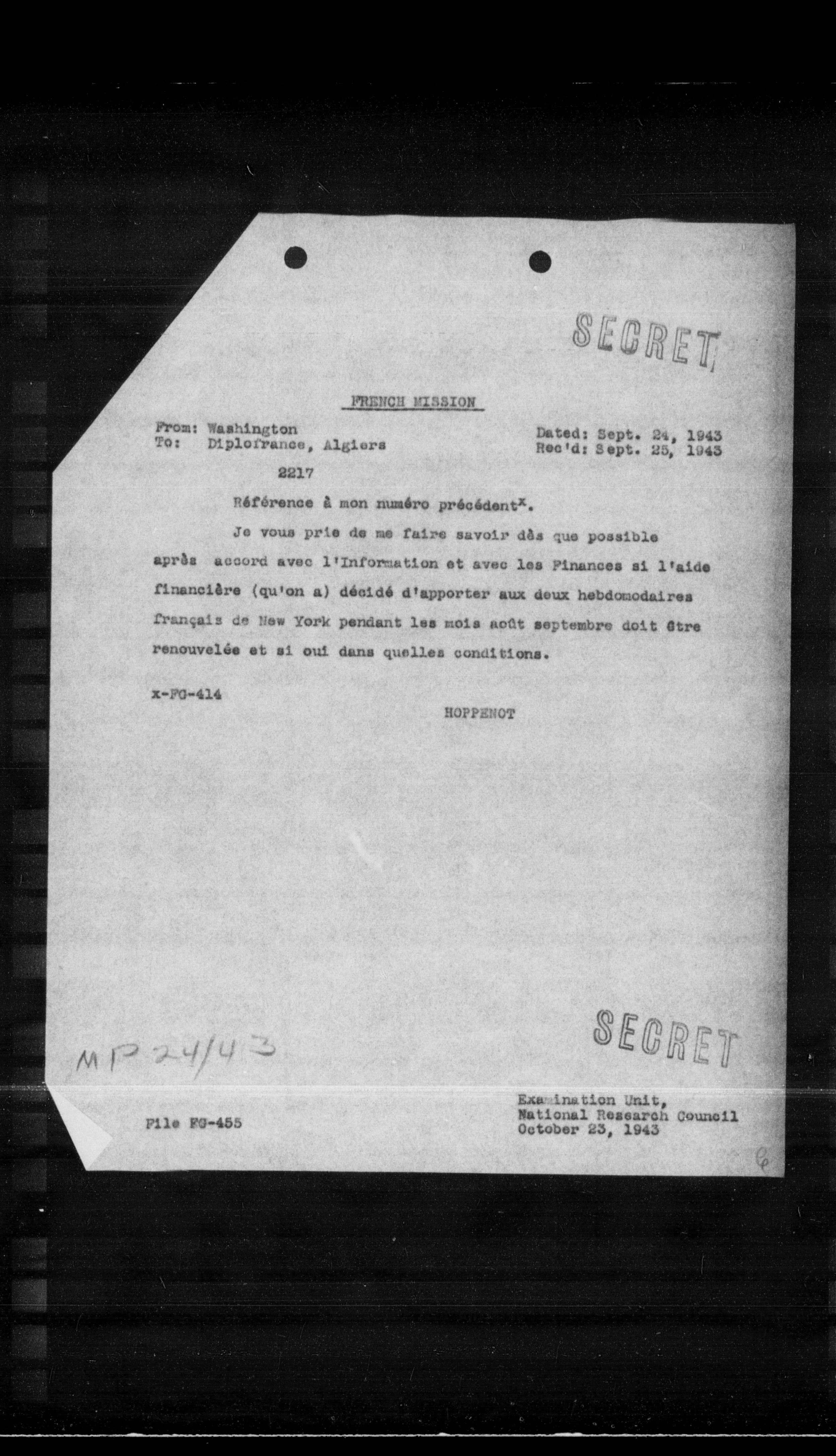 Rec'd: Sept. 23, 1943