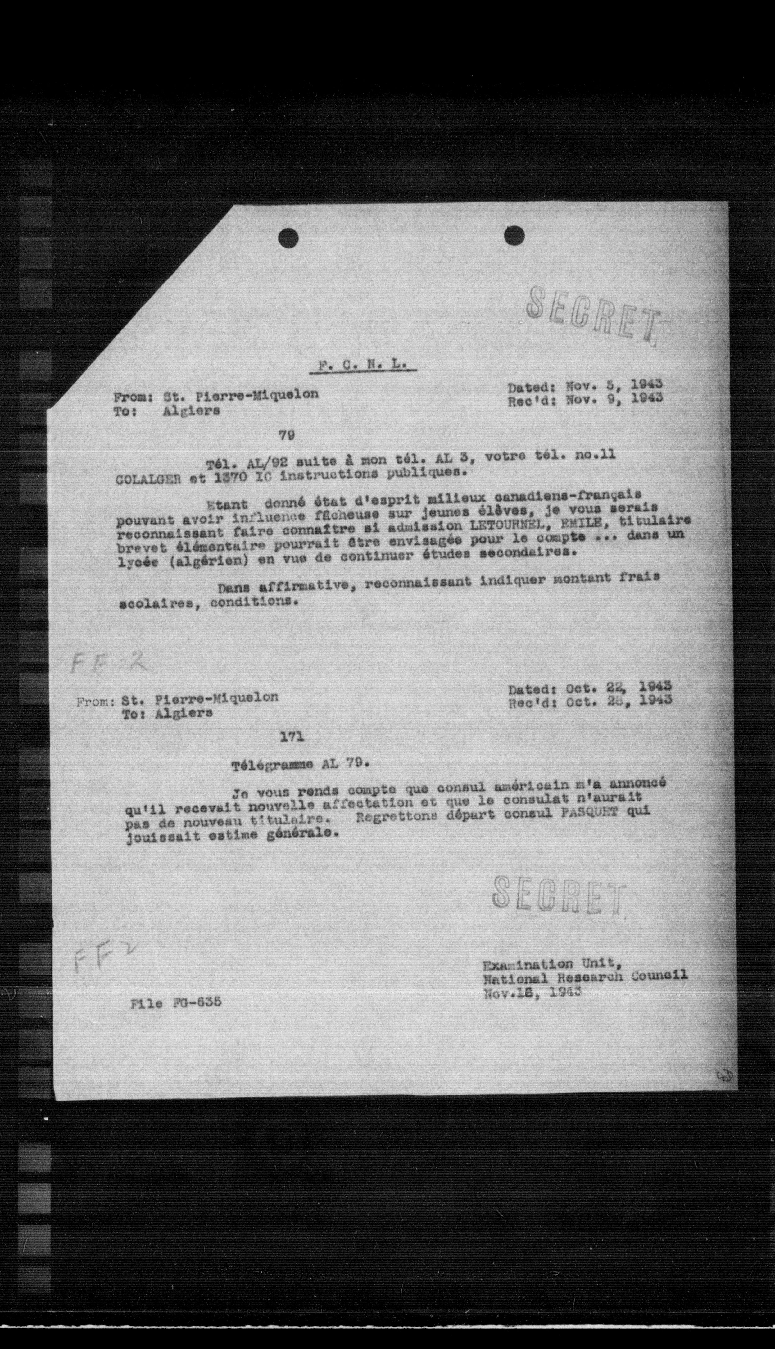 “Reel 17427 - Page 2641,” The Canadian Vichy Intercepts, accessed December 25, 2025, http://omeka.uottawa.ca/examination-unit/items/show/20235.