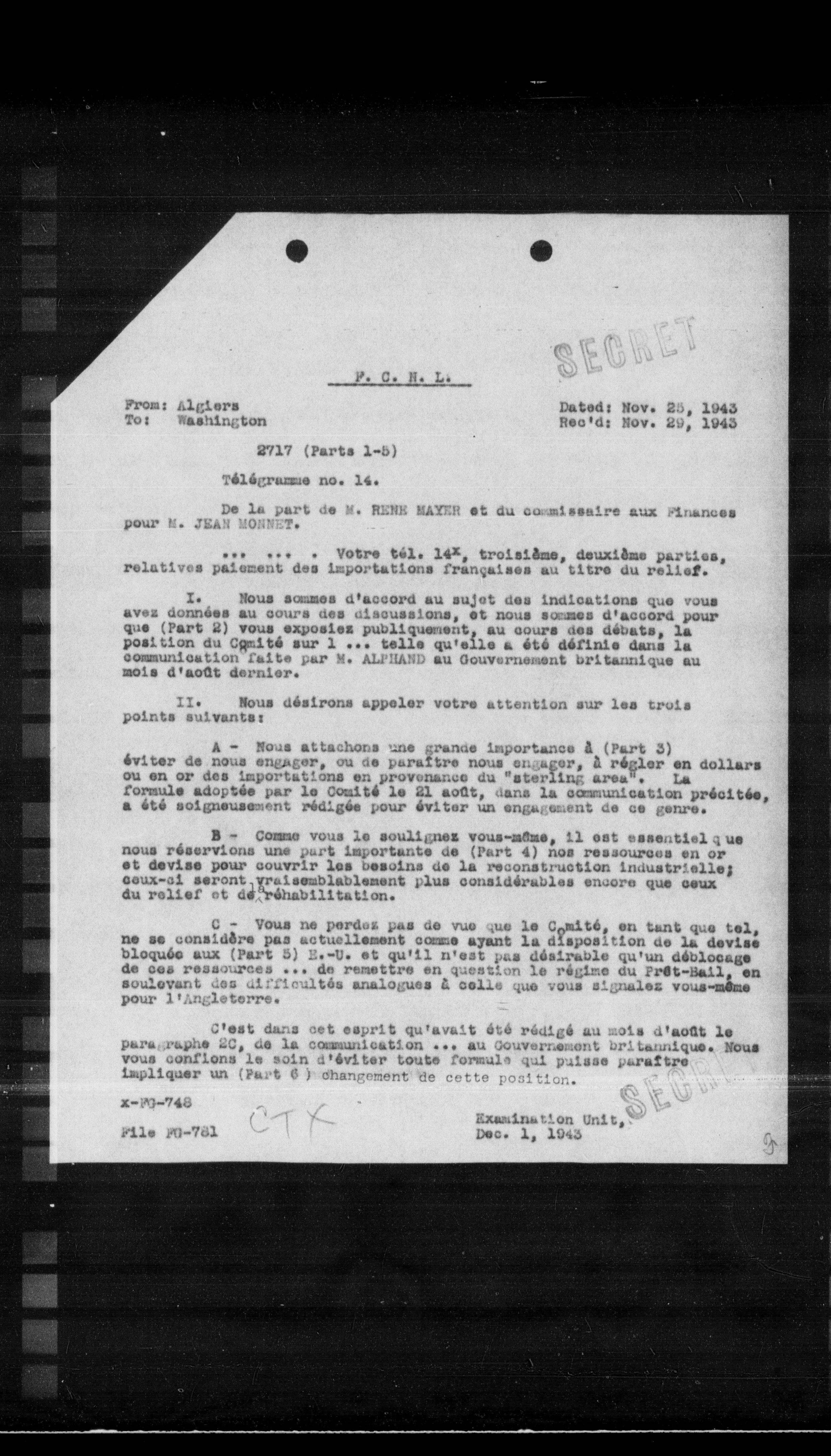De la part de M. RENE MAYER et du commiseaire aux Finances pour M. JEAN MONNET.