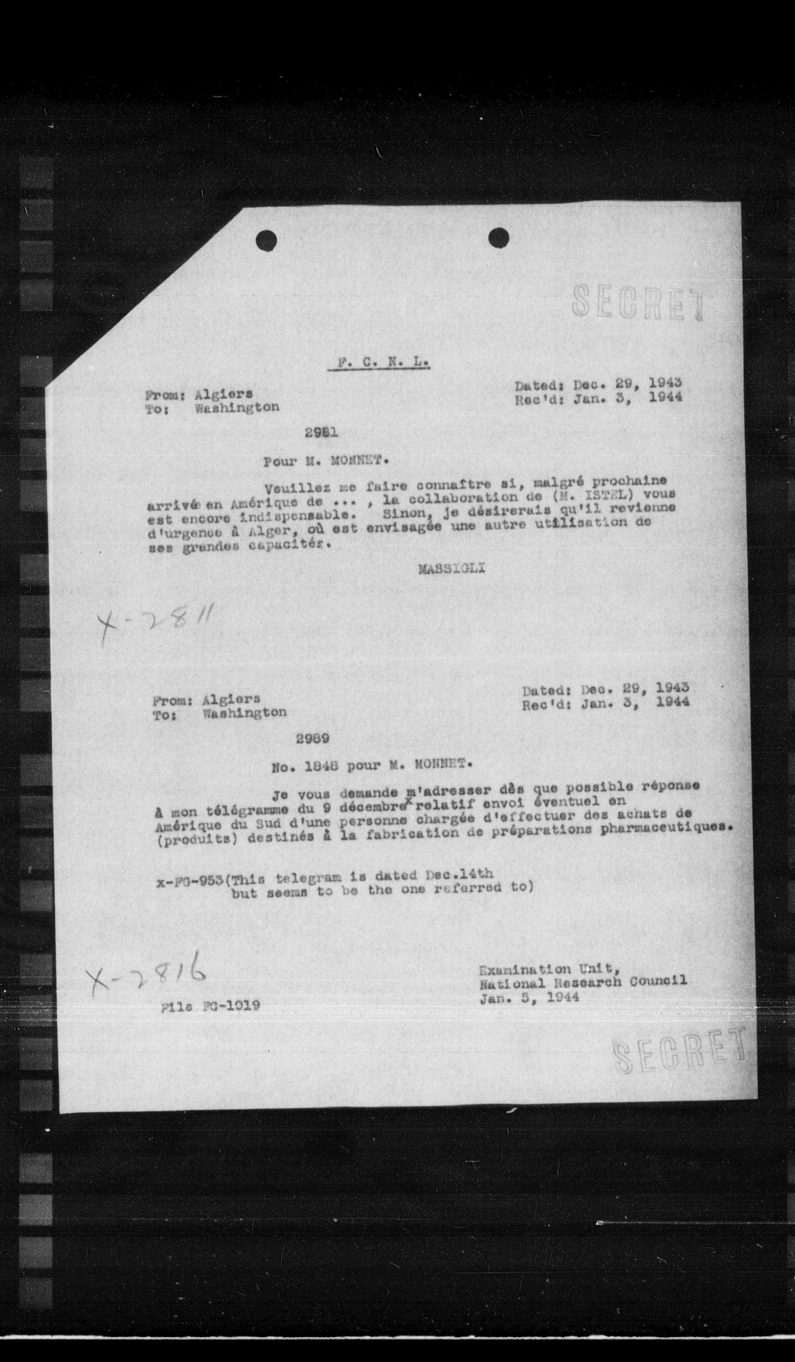 **Dated:** Dec. 29, 1943 **Rec'd:** Jan. 3, 1944