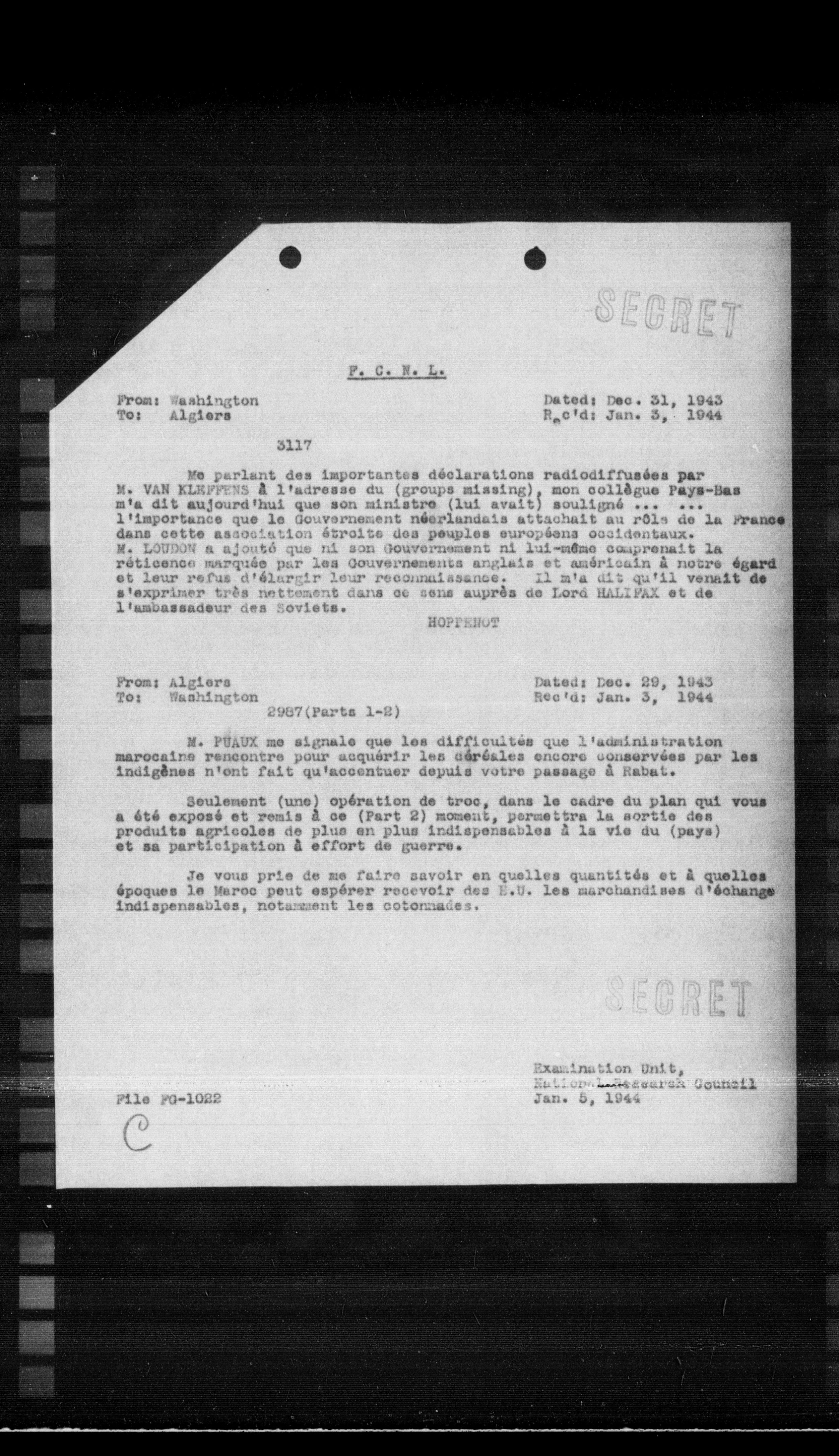 Rec'd: Jan. 3, 1944
