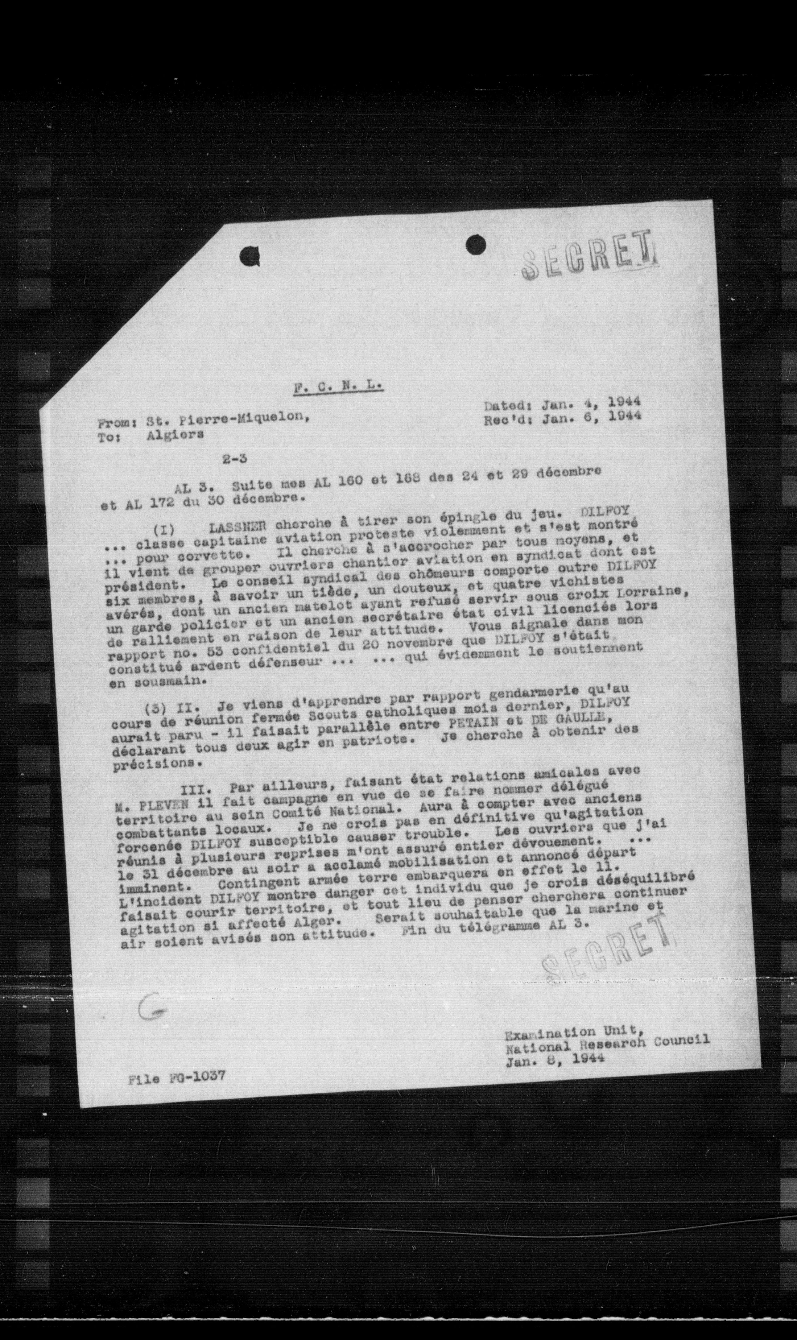 “Reel 17427 - Page 3114,” The Canadian Vichy Intercepts, accessed January 15, 2026, http://omeka.uottawa.ca/examination-unit/items/show/20708.