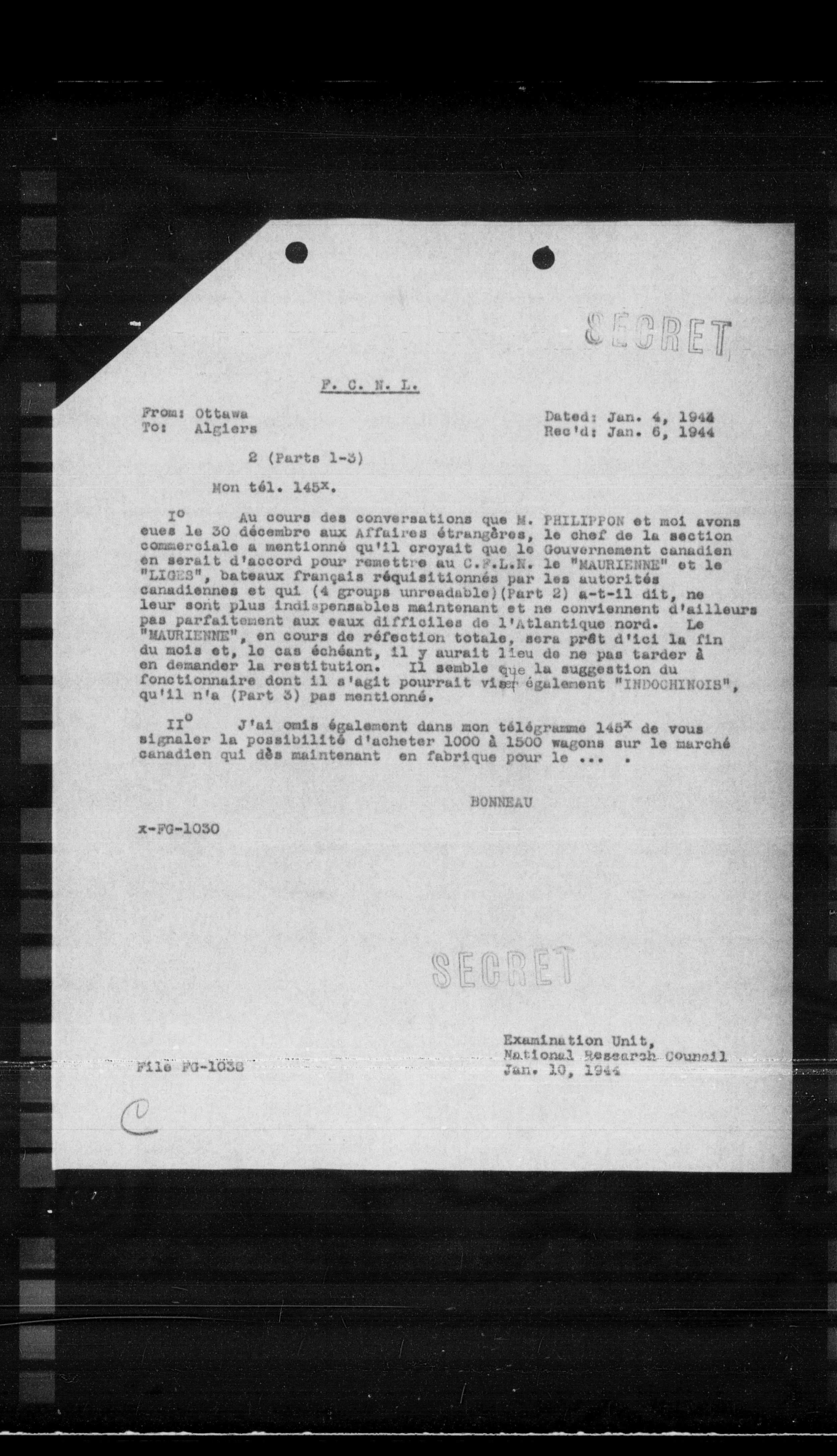 “Reel 17427 - Page 3115,” The Canadian Vichy Intercepts, accessed January 15, 2026, http://omeka.uottawa.ca/examination-unit/items/show/20709.