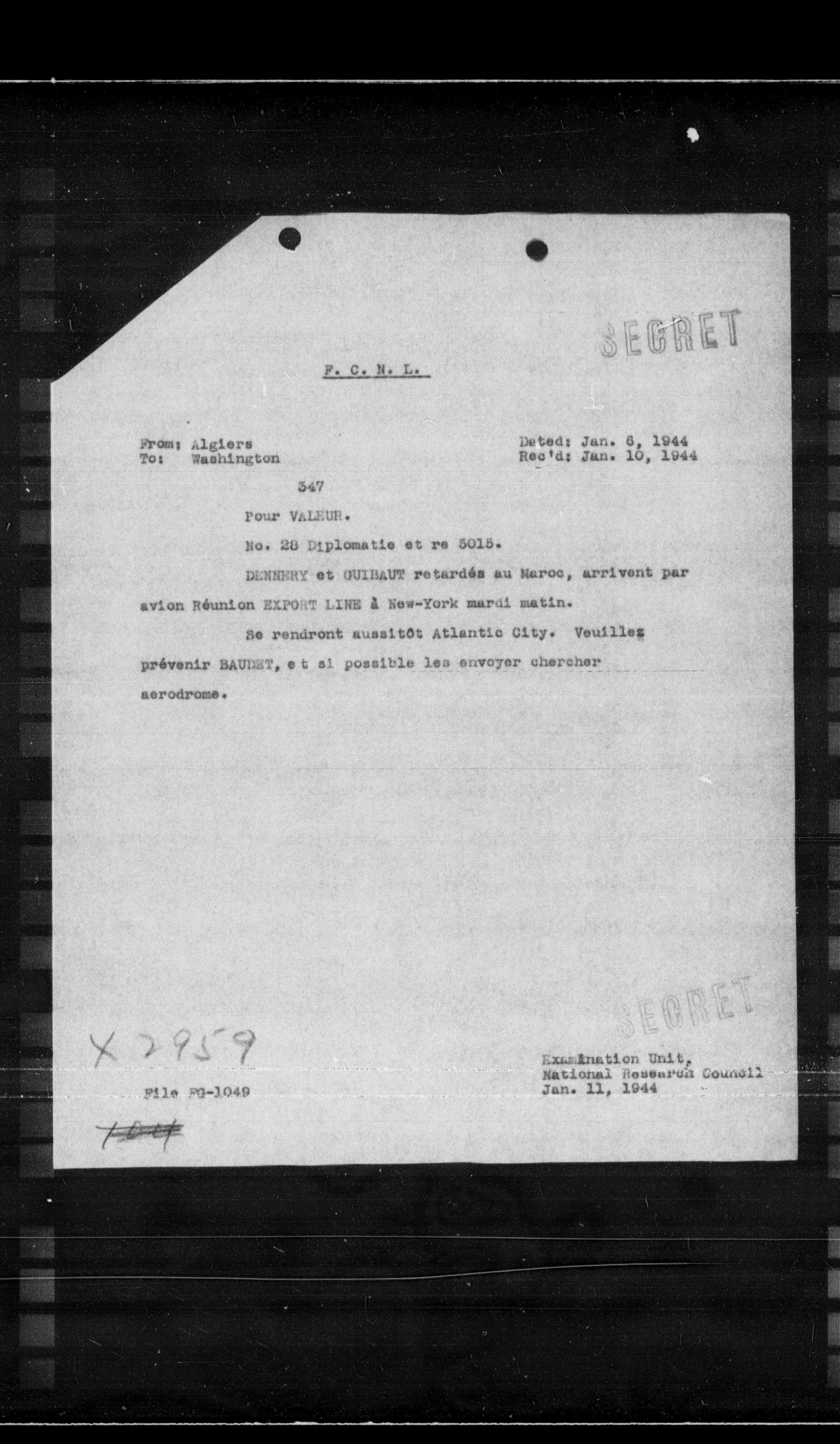 “Reel 17427 - Page 3129,” The Canadian Vichy Intercepts, accessed January 14, 2026, http://omeka.uottawa.ca/examination-unit/items/show/20723.