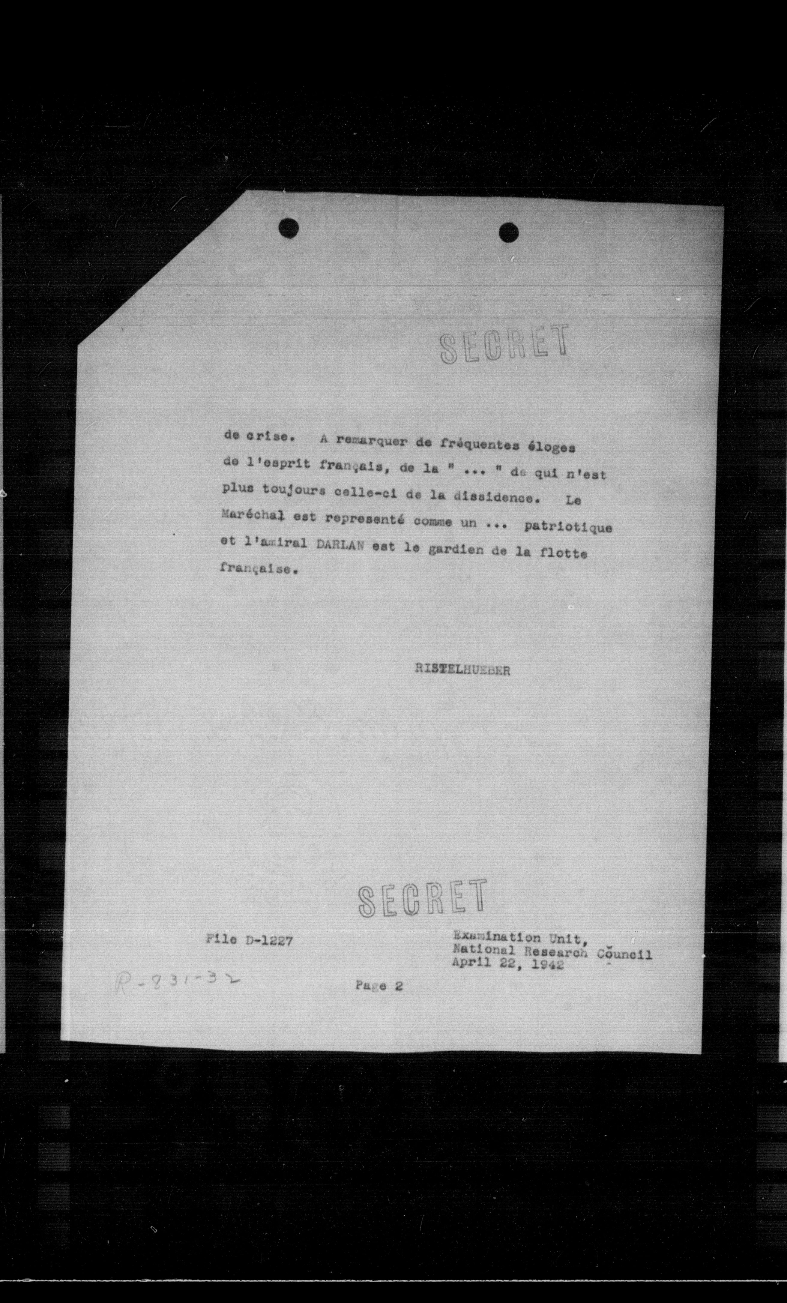 Examination Unit, Rational Research Council April 22, 1942