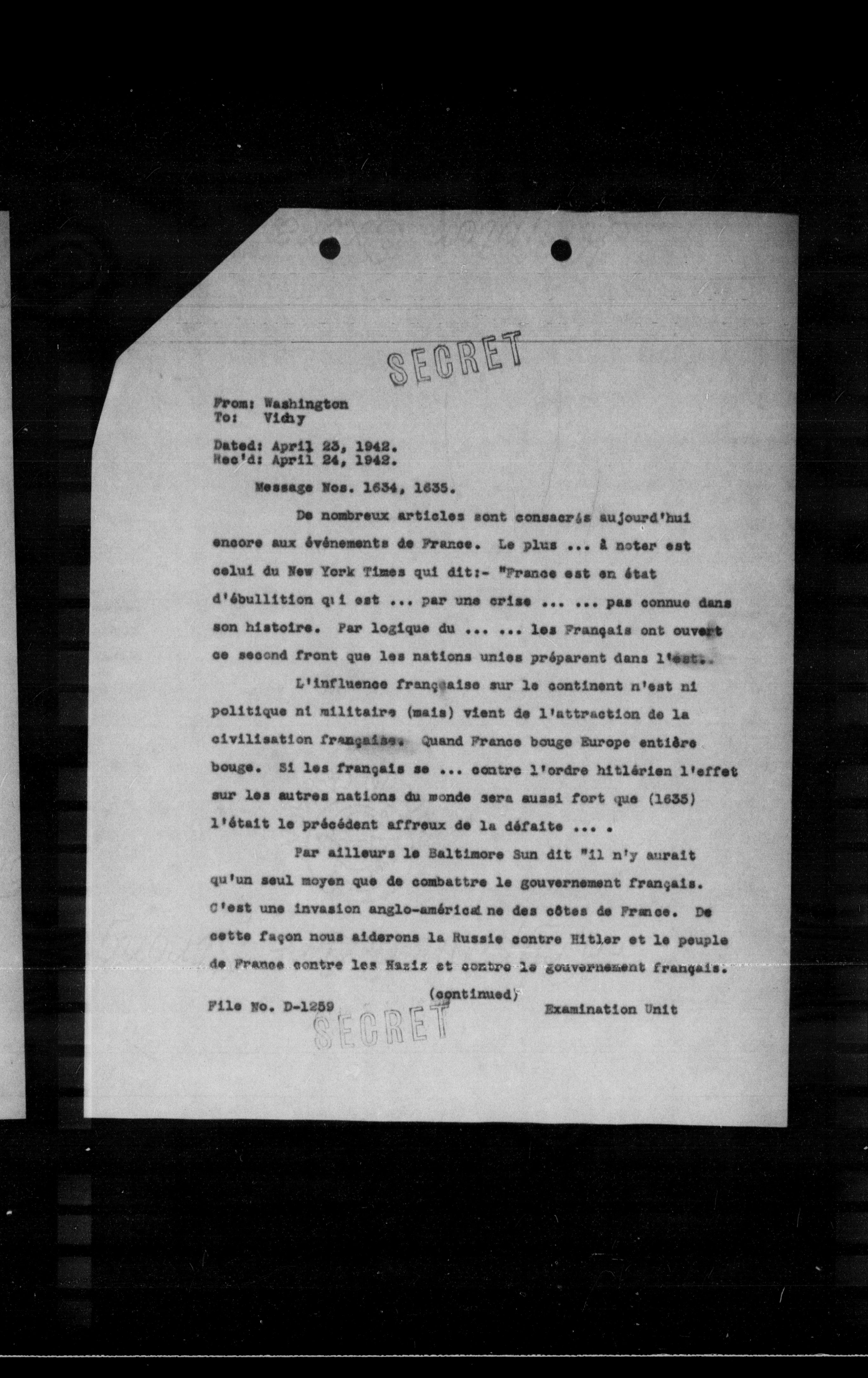 “Reel 17428 - Page 0133,” The Canadian Vichy Intercepts, accessed December 29, 2025, http://omeka.uottawa.ca/examination-unit/items/show/20894.