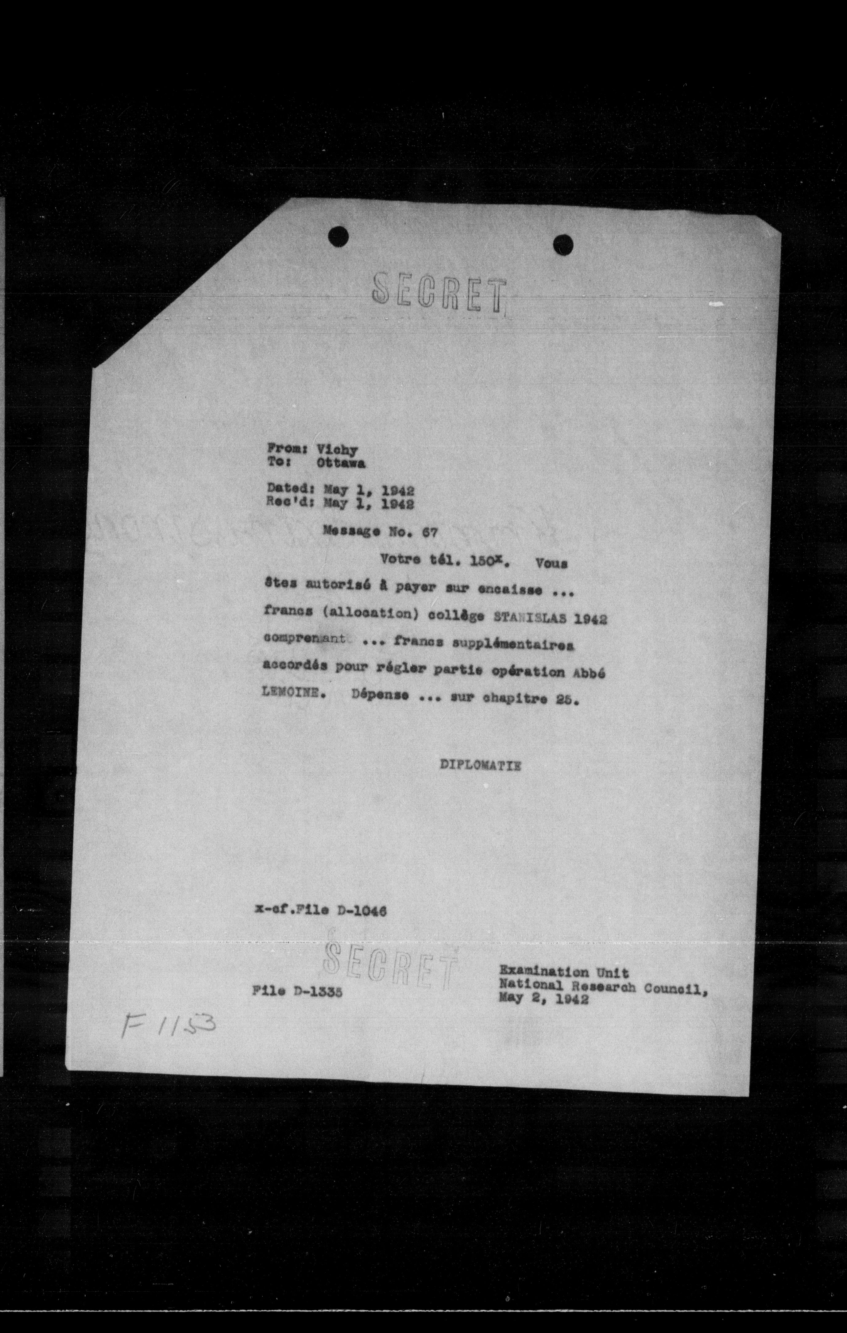 ## 880187 <br> Examination Unit <br> Fille D-1535 <br> National Research Council, <br> May 2, 1942