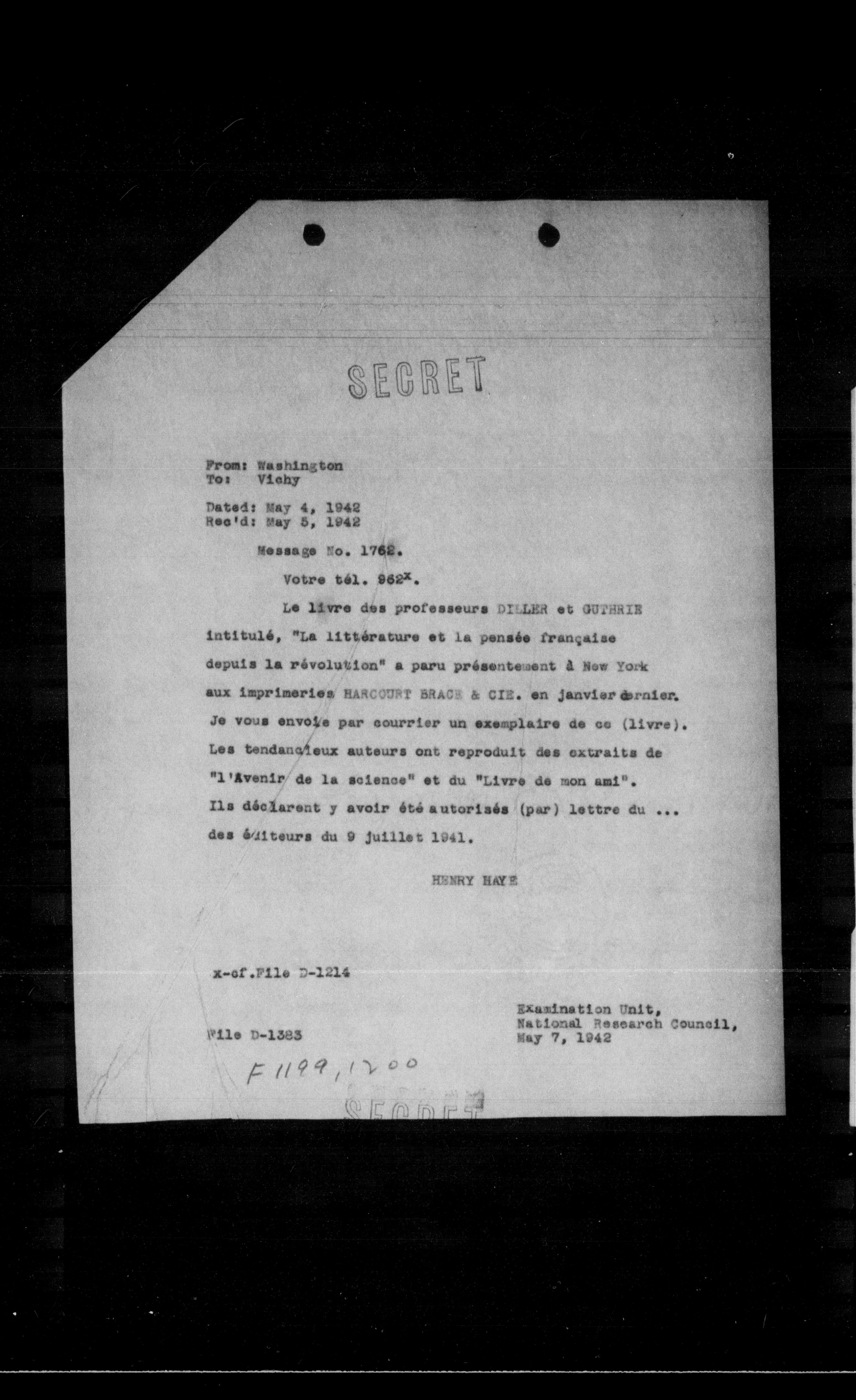 “Reel 17428 - Page 0287,” The Canadian Vichy Intercepts, accessed December 21, 2025, http://omeka.uottawa.ca/examination-unit/items/show/21048.