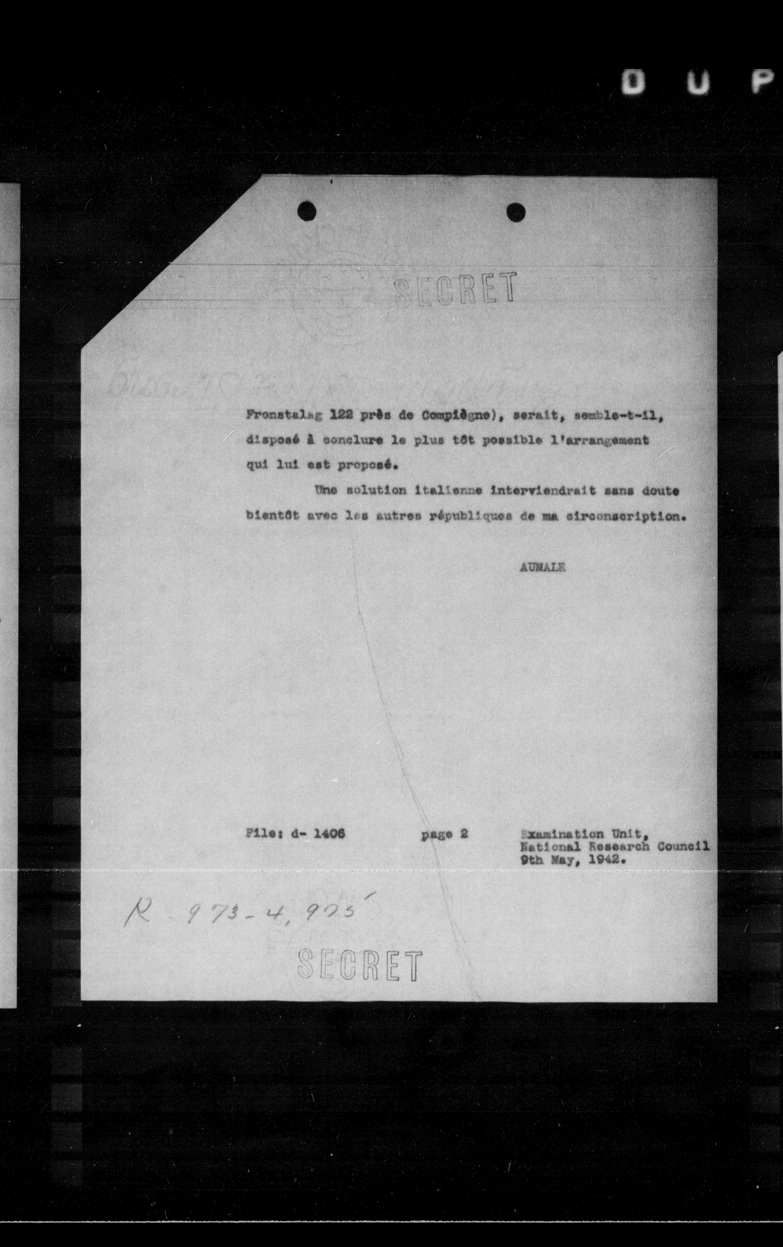 Fronstalag 122 près de Compiègne), serait, semble-t-il, disposé à conclure le plus tôt possible l'arrangement qui lui est proposé.