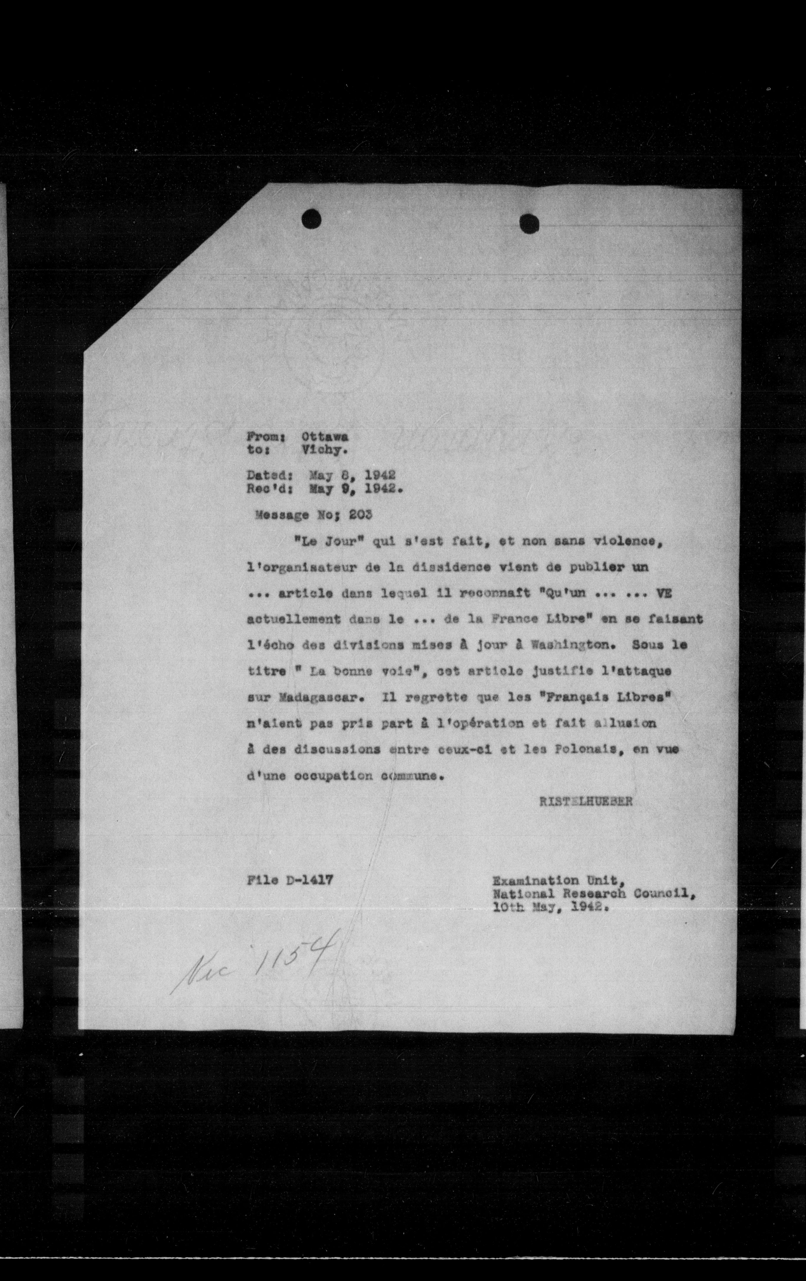 “Reel 17428 - Page 0330,” The Canadian Vichy Intercepts, accessed December 18, 2025, http://omeka.uottawa.ca/examination-unit/items/show/21091.