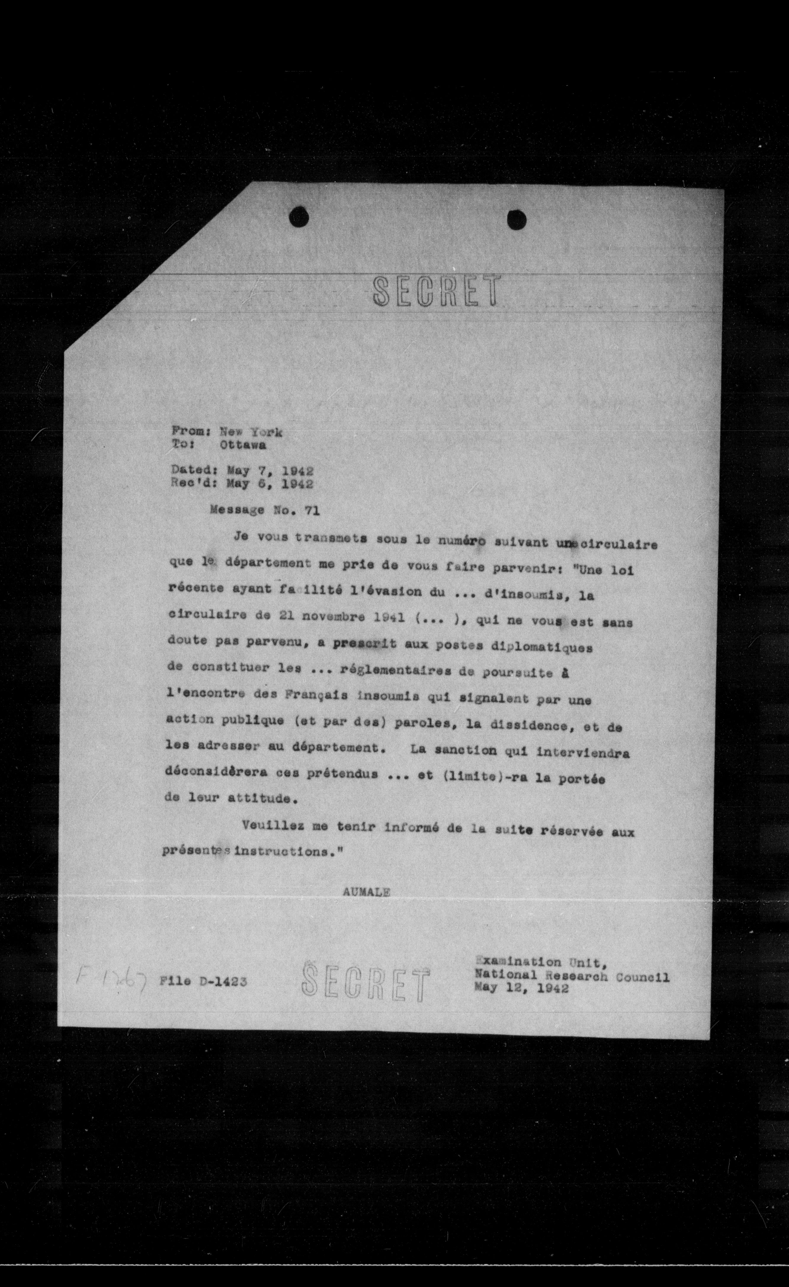 “Reel 17428 - Page 0342,” The Canadian Vichy Intercepts, accessed December 19, 2025, http://omeka.uottawa.ca/examination-unit/items/show/21103.
