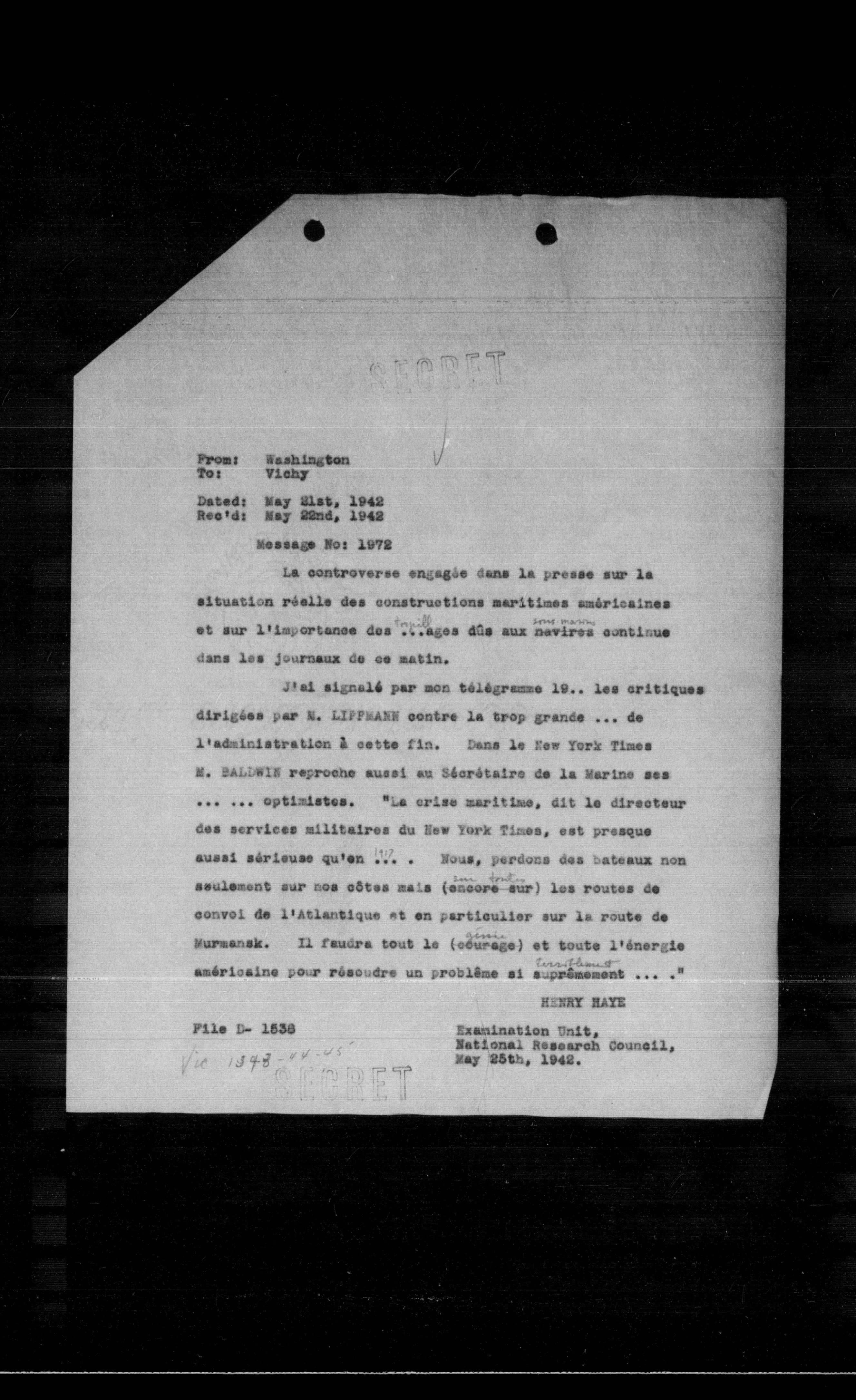 “Reel 17428 - Page 0516,” The Canadian Vichy Intercepts, accessed December 23, 2025, http://omeka.uottawa.ca/examination-unit/items/show/21277.