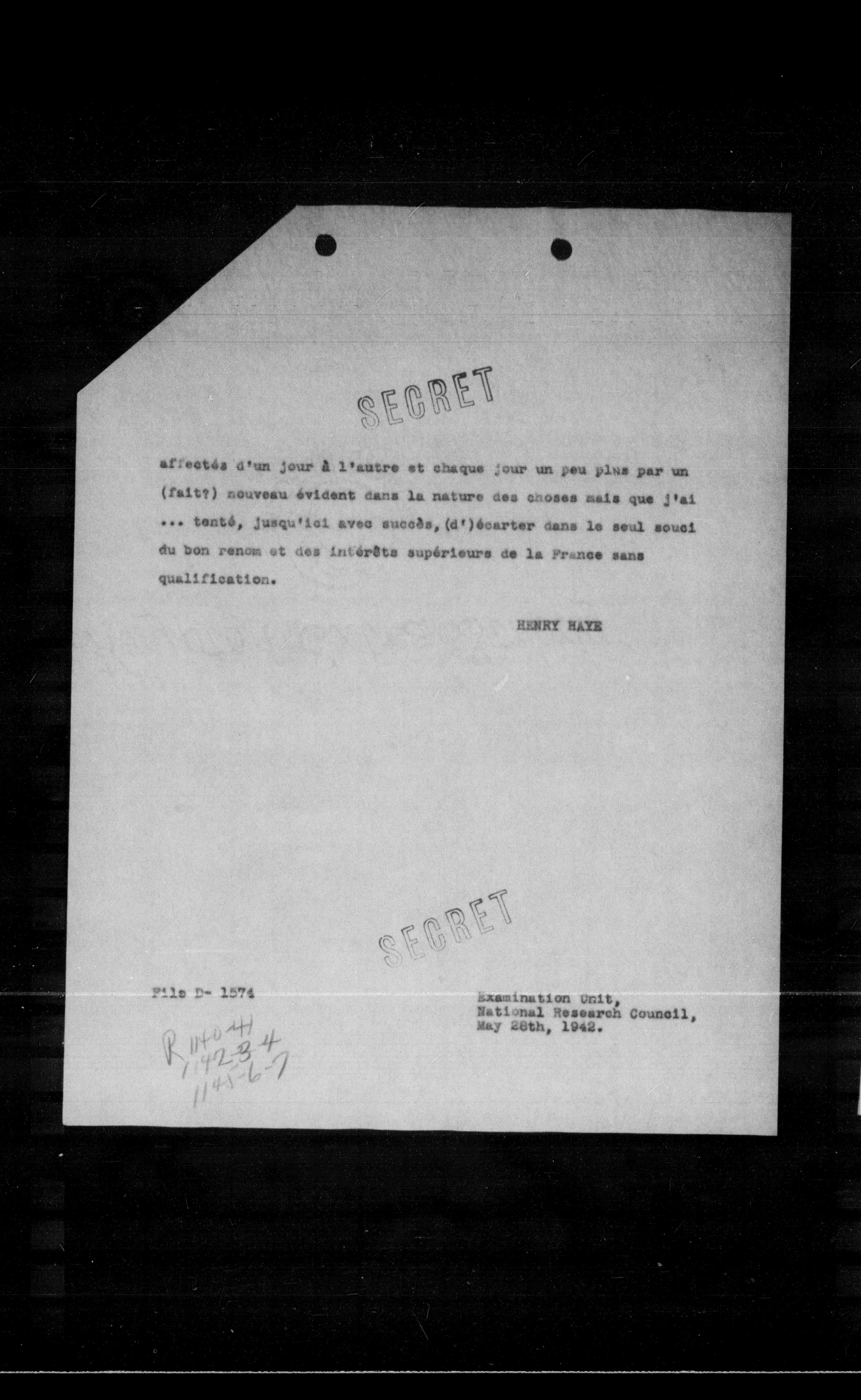 Examination Unit, National Research Council, May 28th, 1942.